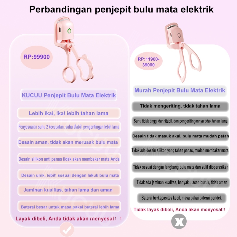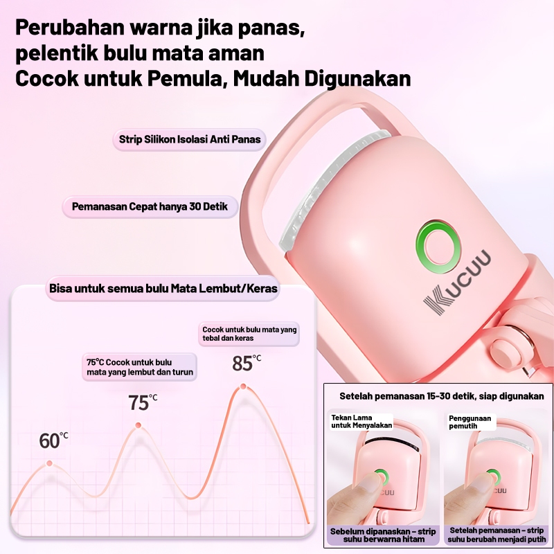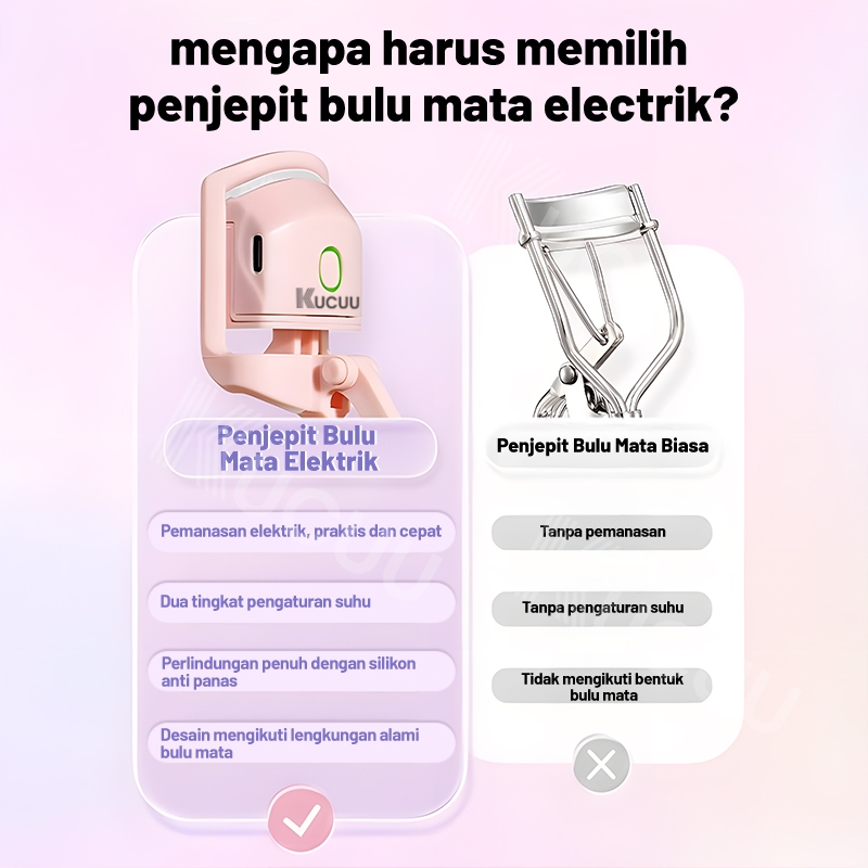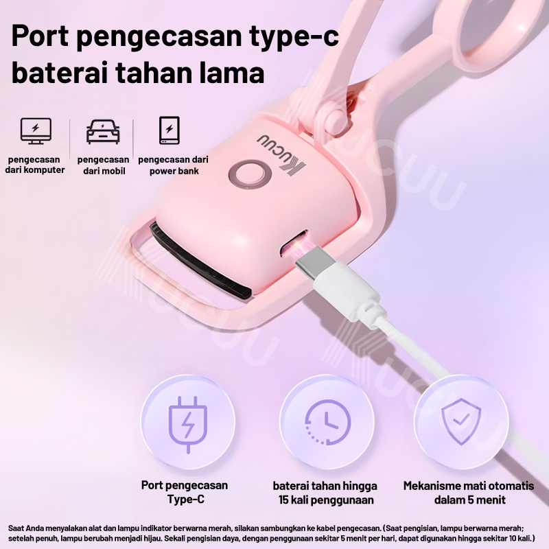 【NEW】KUCUU Penjepit Bulu Mata Elektrik Lasting Curl Portable Electric Eyelash Curler Makeup Tools