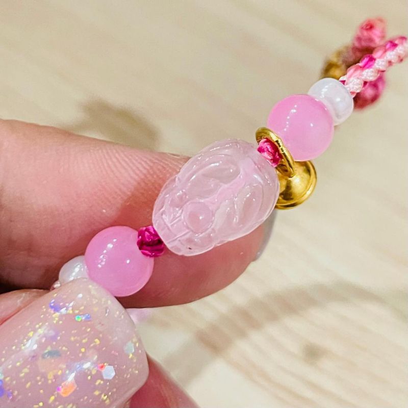 GELANG BATU STONE PINK LONG GUI CHARM KERINCING LONCENG EMAS ASLI 24 K EMAS HK ASLI 9999%