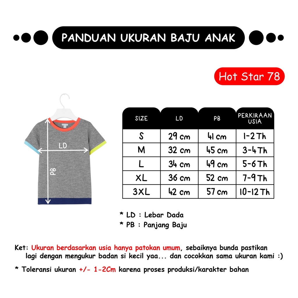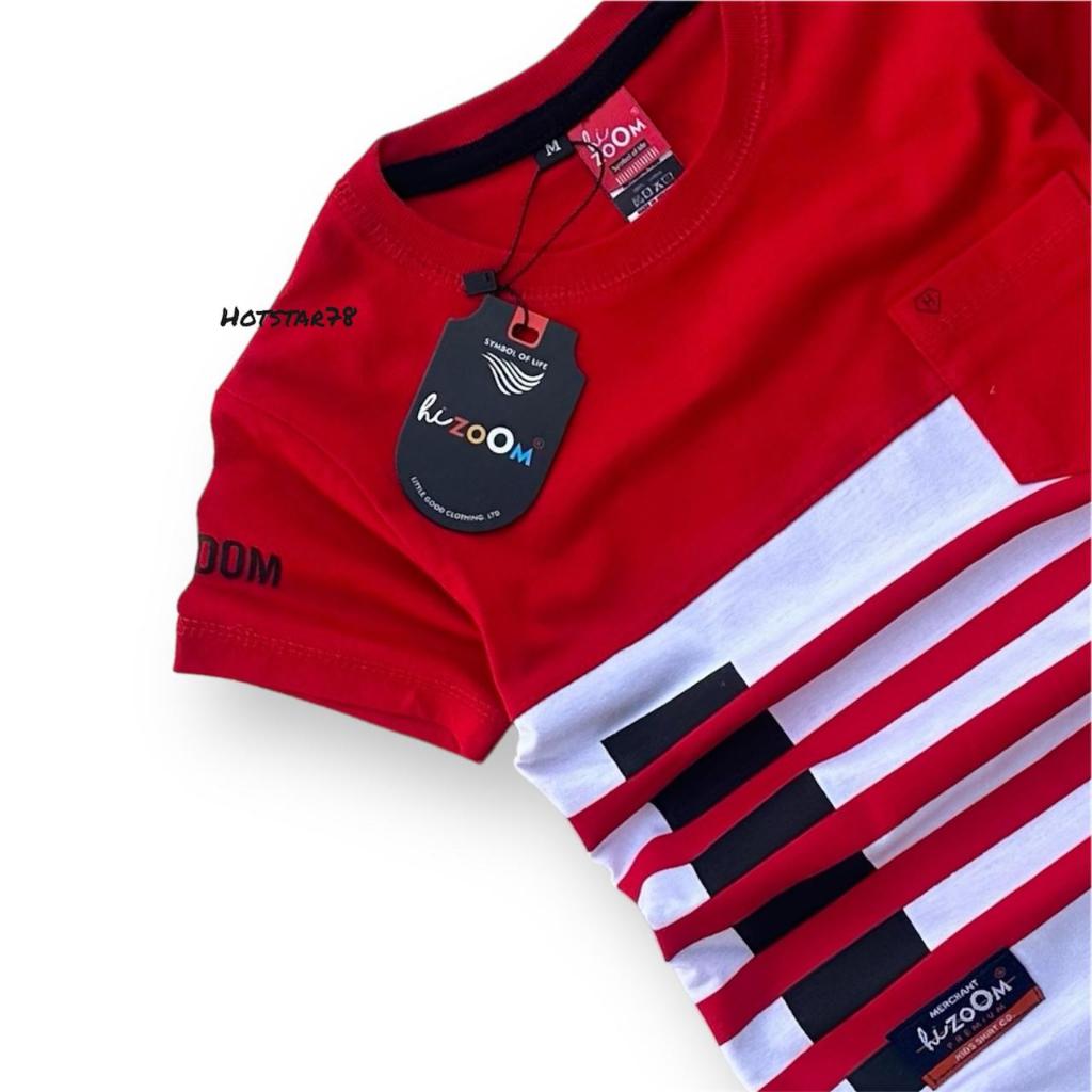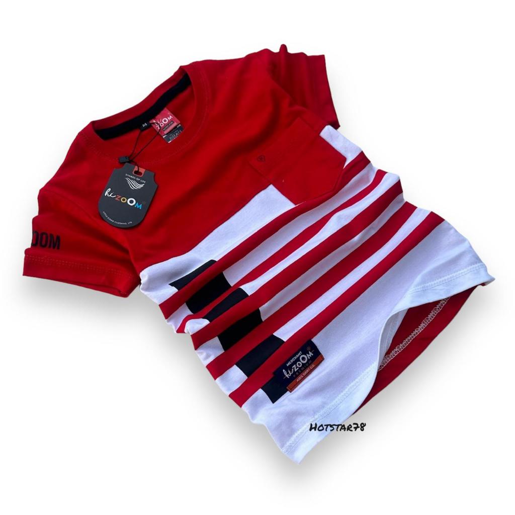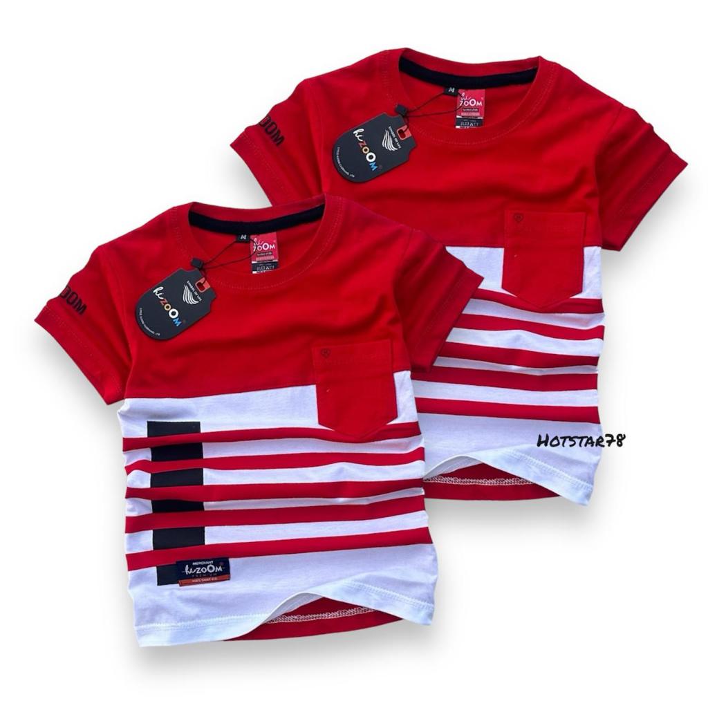 Hizoom Baju Kaos Oblong Anak Laki - Laki Warna Merah-Putih Usia 1-12 Tahun Bahan Katun