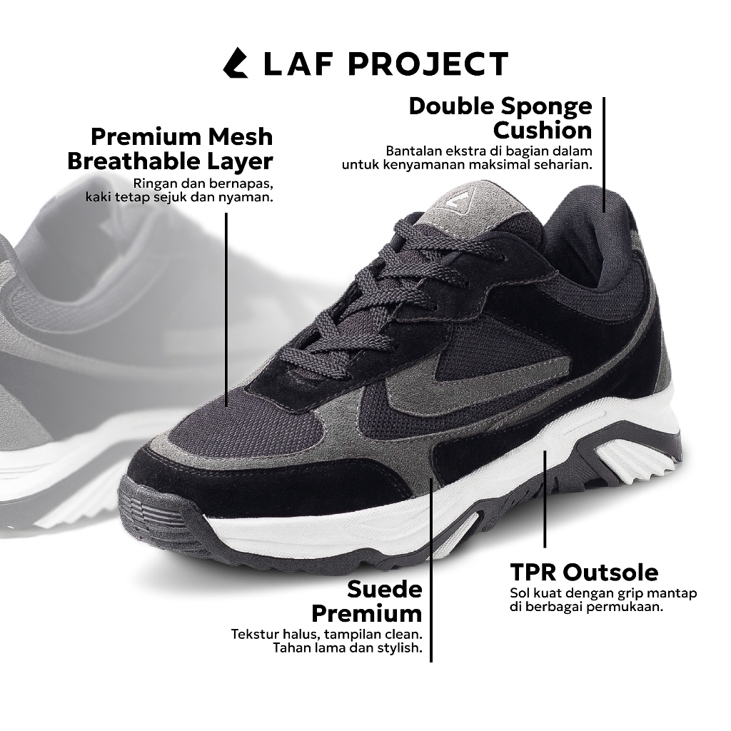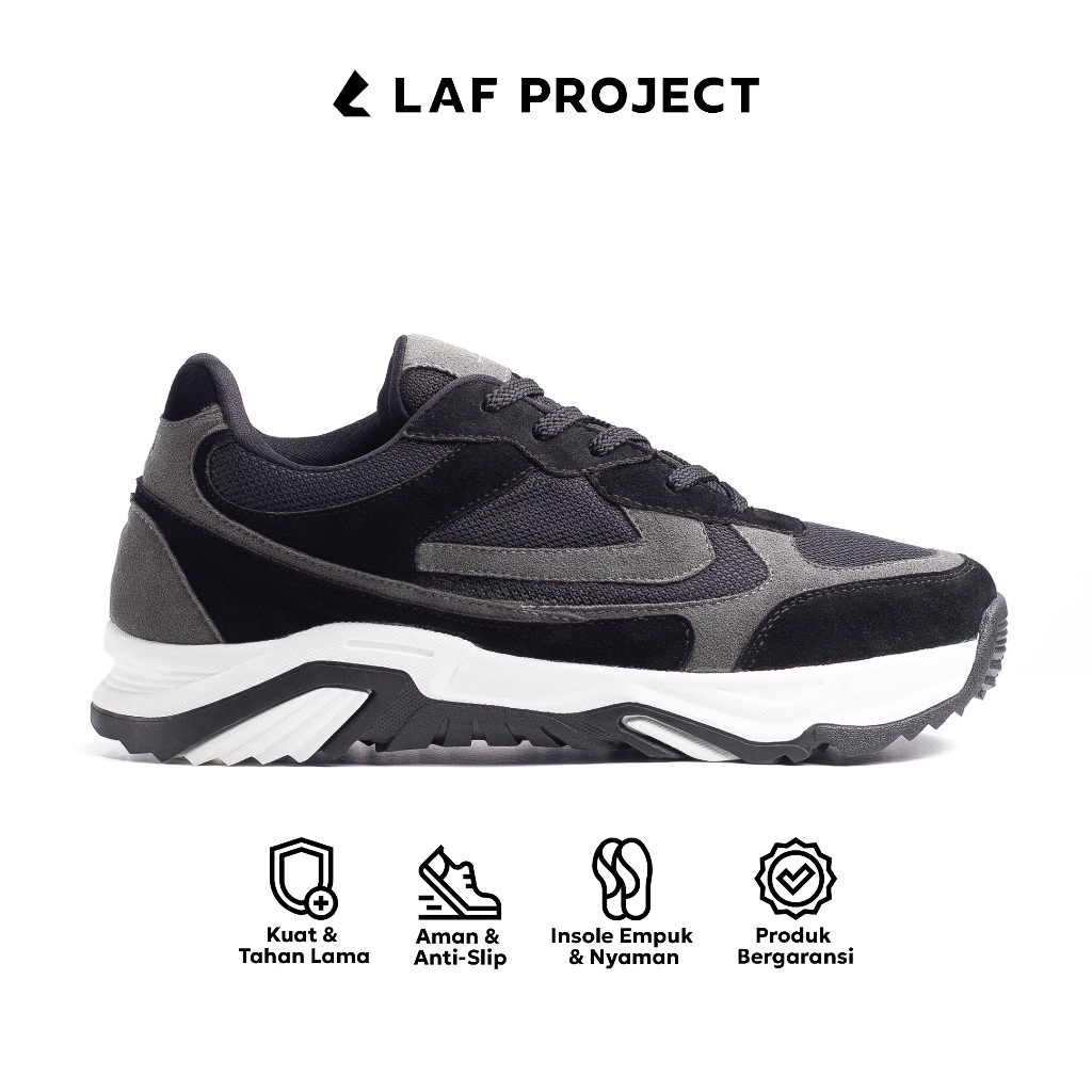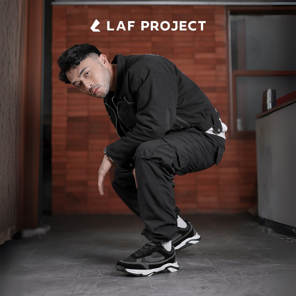 LAF Project - Sepatu Sneakers Pria Hitam Putih Polos Casual Keren Sporty Neo Walk