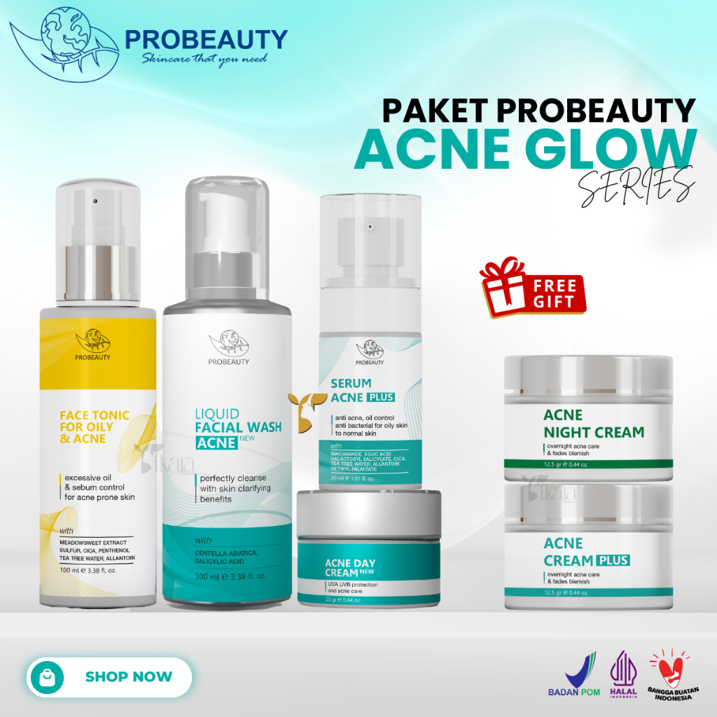 Probeauty paket acne glow series - Paket skincare wajah berjerawat mencerahkan & anti noda hitam
