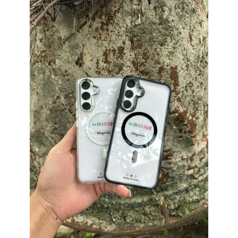 Case magsafe Samsung A56 5G / A36 5G / A26 5G / A16 5G / S24 FE / S23 FE / S21 FE / A15 5G / A14 5G / A13 4G 5G / A24 / A05S / A04S / A35 5G / A25 5G / A54 5G / A34 5G Soft hard Casing transparan Clear Bumper Holder magnet Cover casing