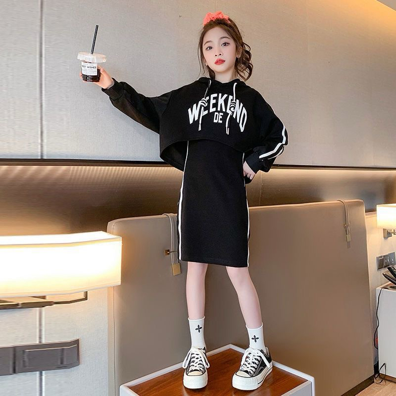 LUXICA 4-15tahun Dress hoodie fashion inner plus outer Viral Anak Perempuan Termurah dress santai anak perempuan sweater oversized cotton premium Dress Princess Gaun Pesta Putri Dress katun fashion LX_FS11