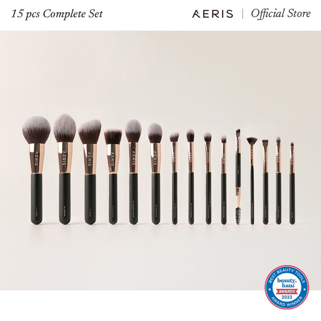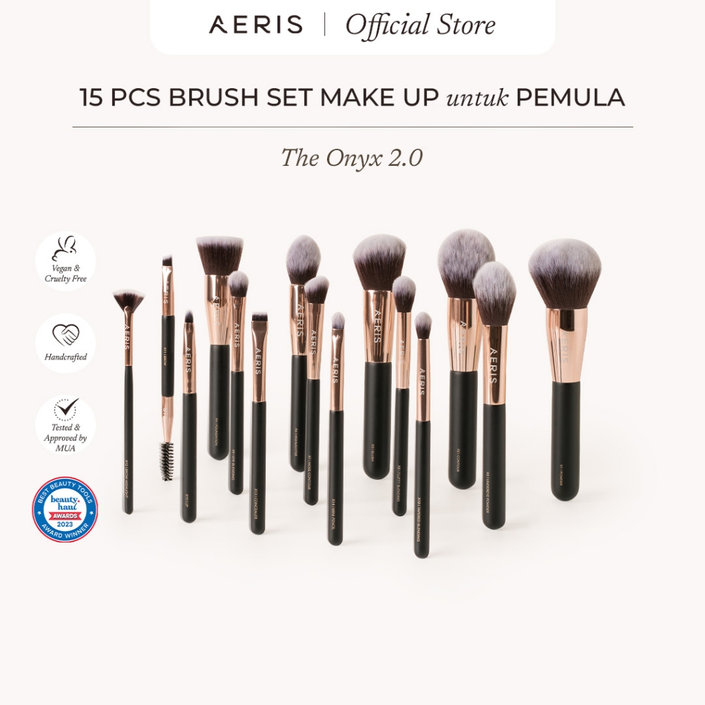 Aeris Beauté The Onyx 2.0 Brush Set - 15 pcs Complete Set | Brush Make Up Set Kuas Rias Lembut Premium 1 Set Lengkap Terjangkau Bagus untuk Pemula Multifungsi untuk Wajah dan Eyeshadow
