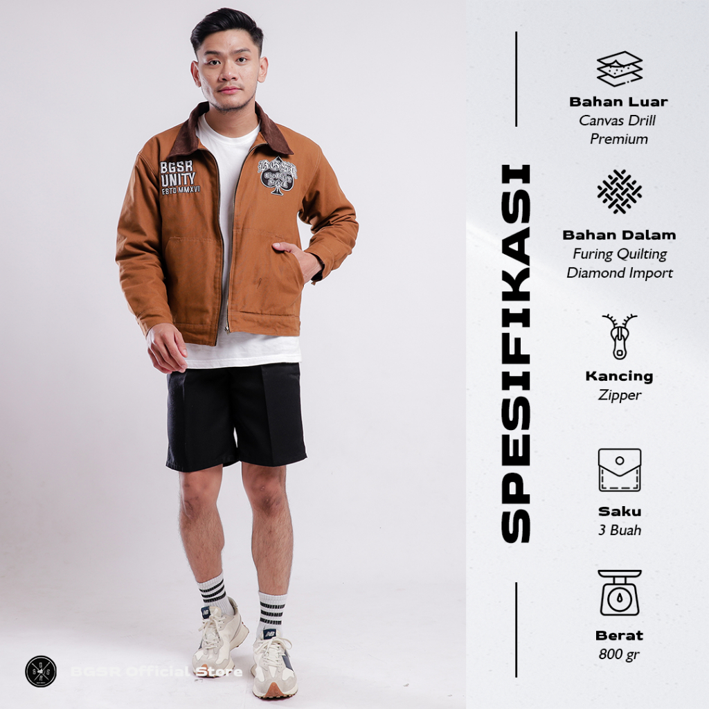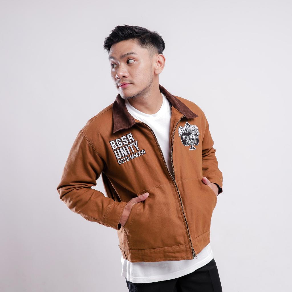 BGSR Jaket Suede Kerah Kulit WORK JACKET Pria Varsity Cowok Rider Motor Vintage Premium Tebal keren