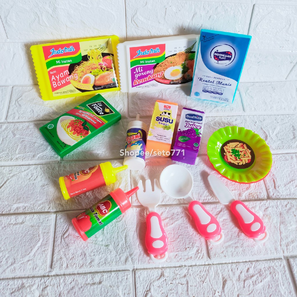 Mainan Mie Instan Set Indomi Simulasi Miniatur Mie rebus Mie goreng dll