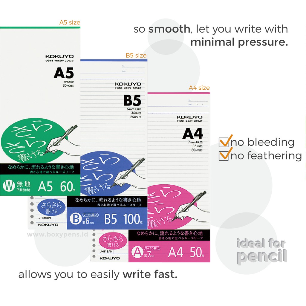 Kokuyo Loose Leaf B5 With Margin Line for Pencil Pink - 7 mm