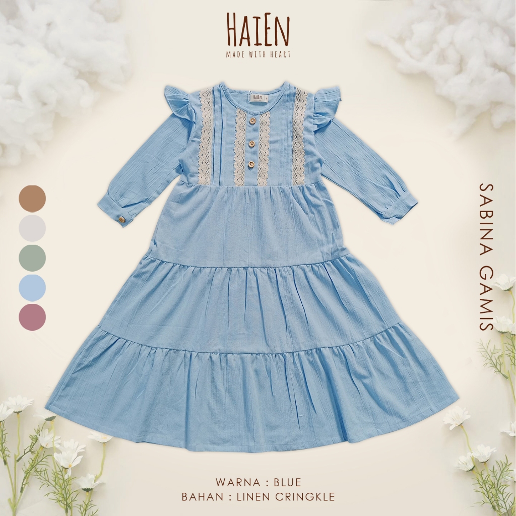 HaiEn Sabina Gamis - Dress Baju Gamis Anak PerempuanUsia 2-12 Tahun Bahan Linen Cringkle Premium