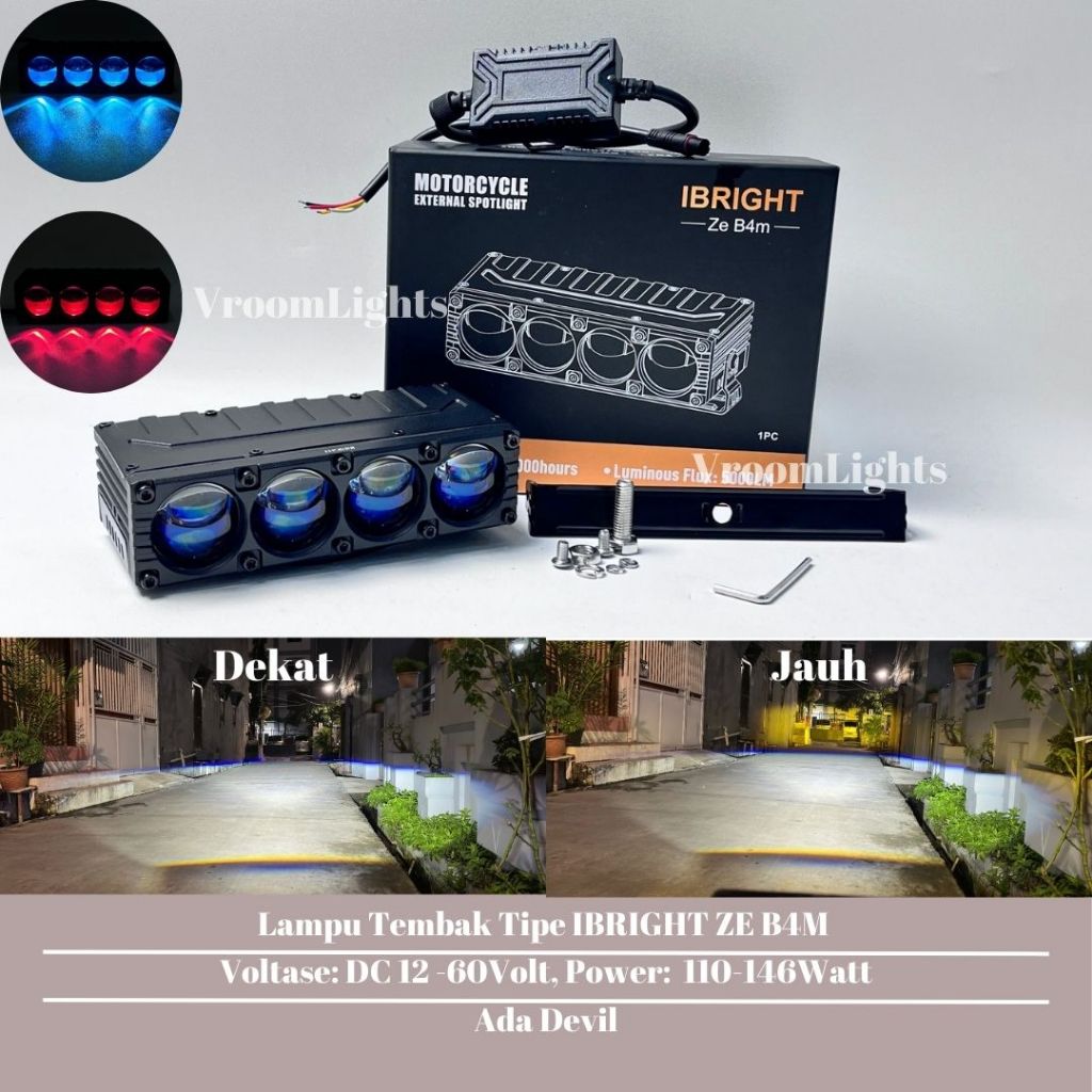 IBRIGHT Tipe ZE B4M - Lampu Tembak Biled 4 Mata Blue Lens