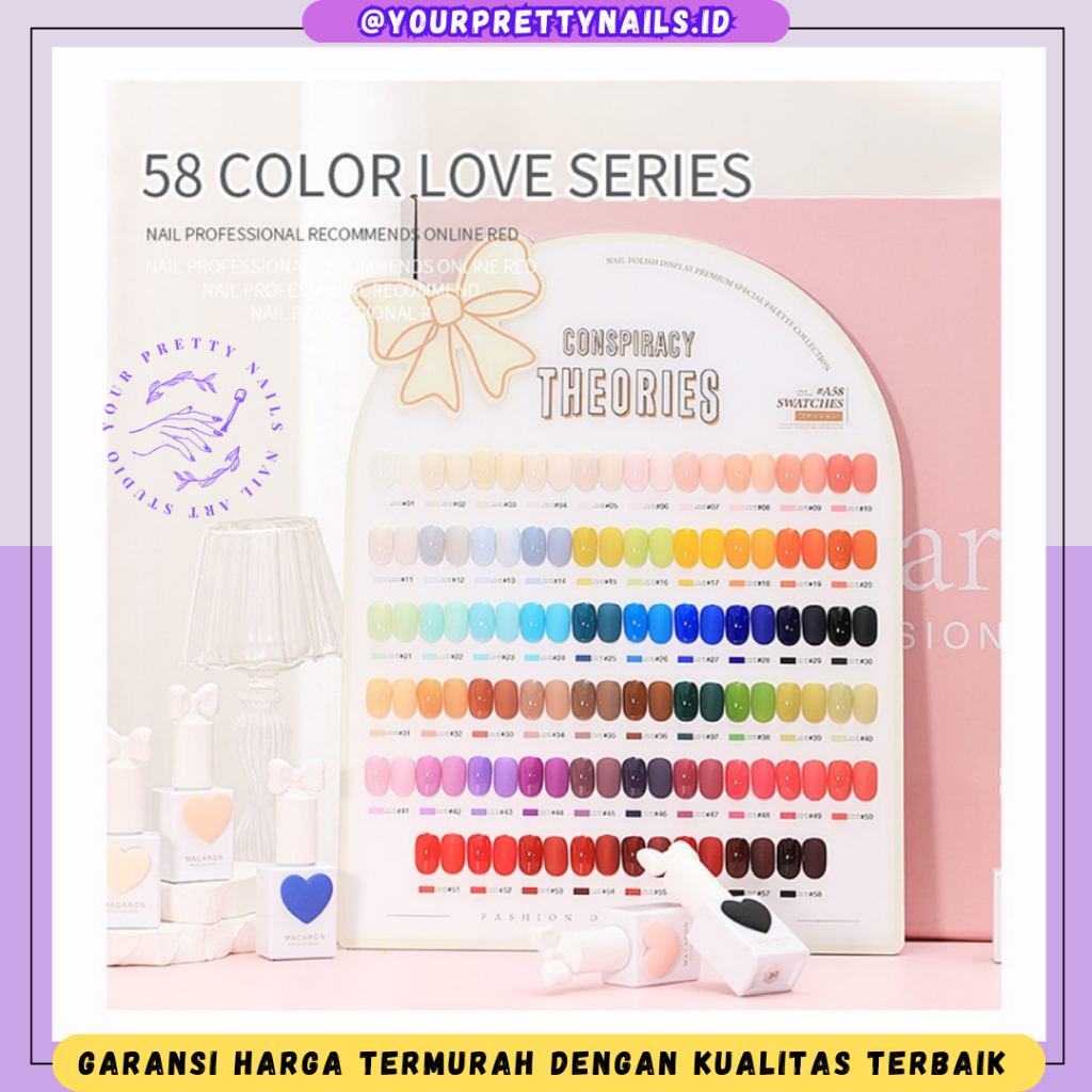 (READY STOCK) SANSU MACARON 58 COLORS 1 SET FREE DISPLAY DAN BASE TOP COAT / MILAN VERY GOOD NAIL 58 COLORS MACARON SANSU AS MIJIAER CAT EYE SOLID GLITTER TRANSPARENT JELLY COLOR
