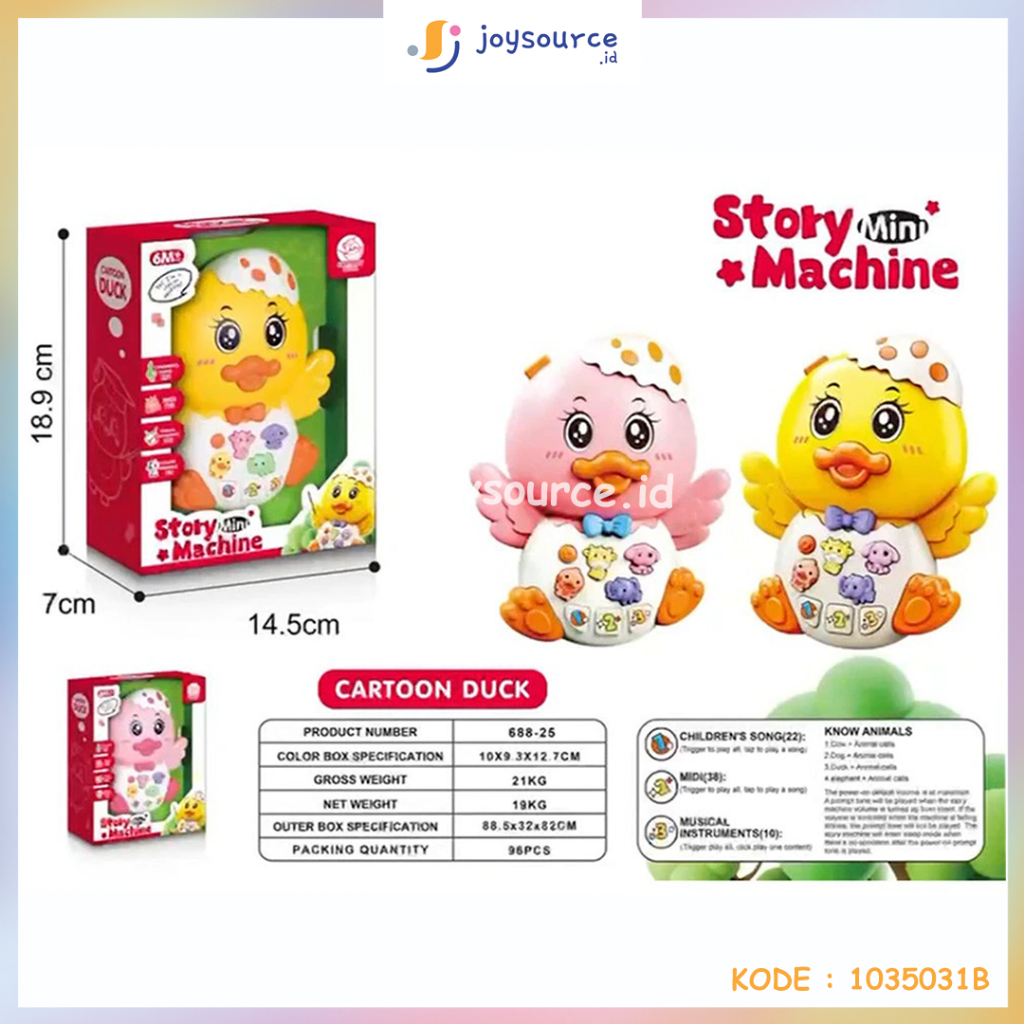 Mainan Story Machine Duck Cartoon Edukasi Anak Bebek Kartun 33 Lagu, 38 Melody, 19 Suara Alat Musik, 14 Suara Transportasi 4 Suara Hewan I ANIMAL MINI CERITA 5031B