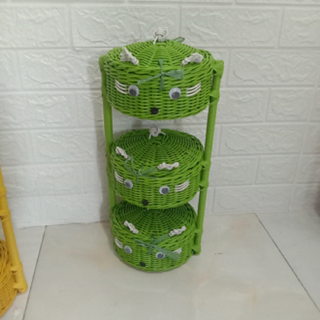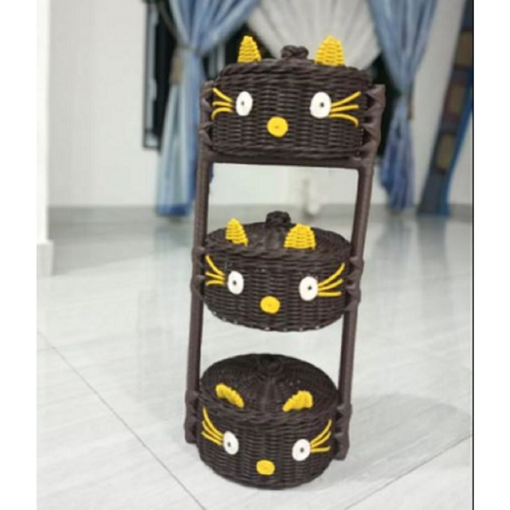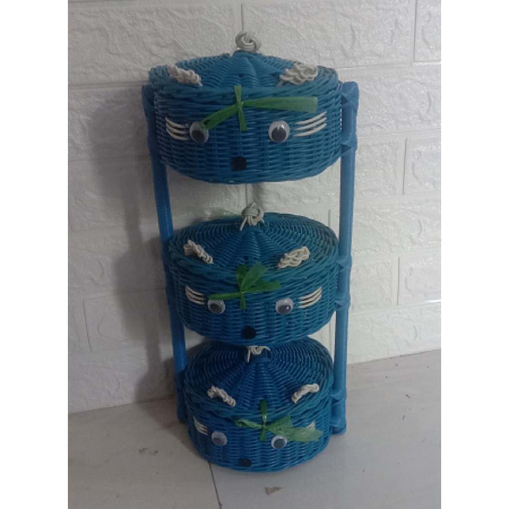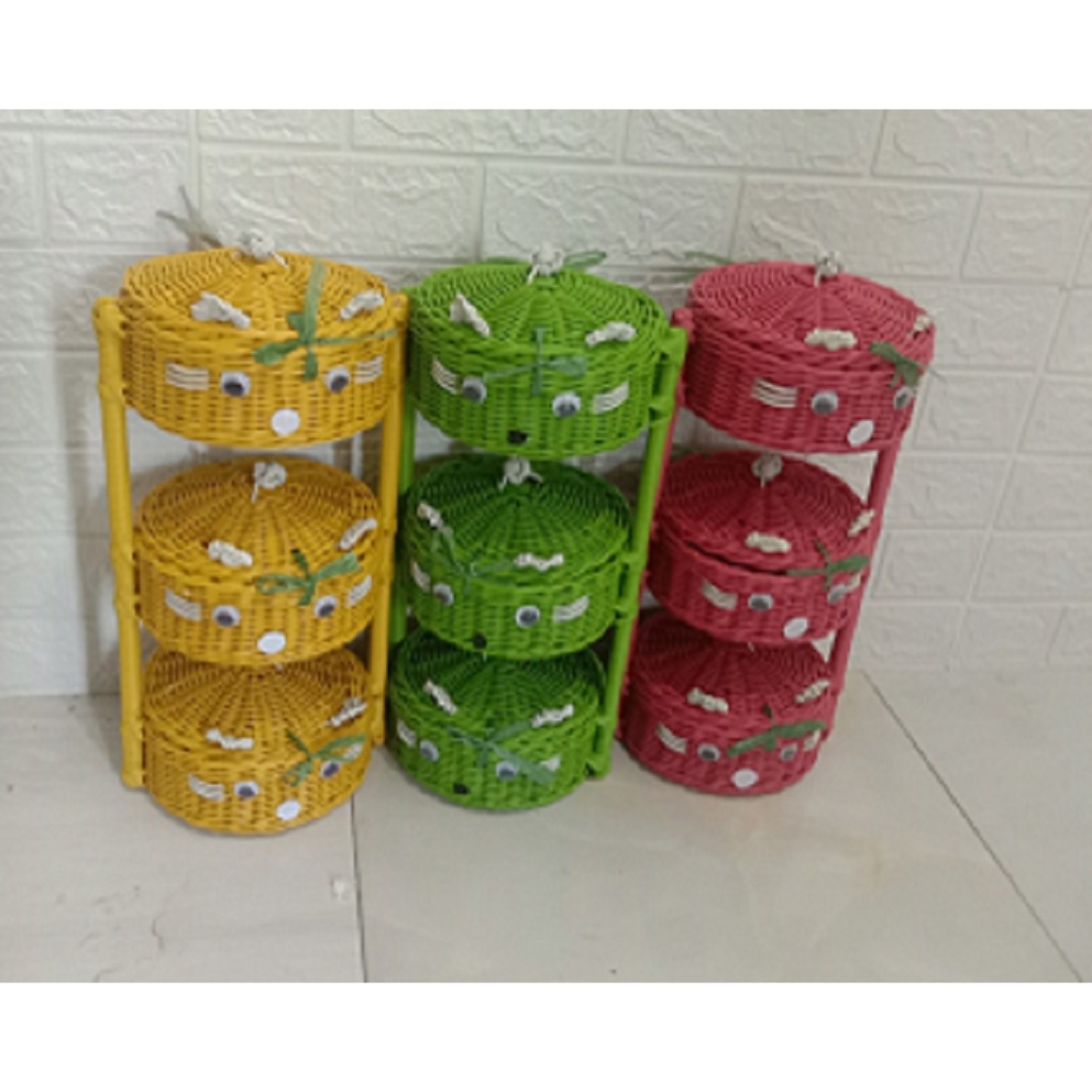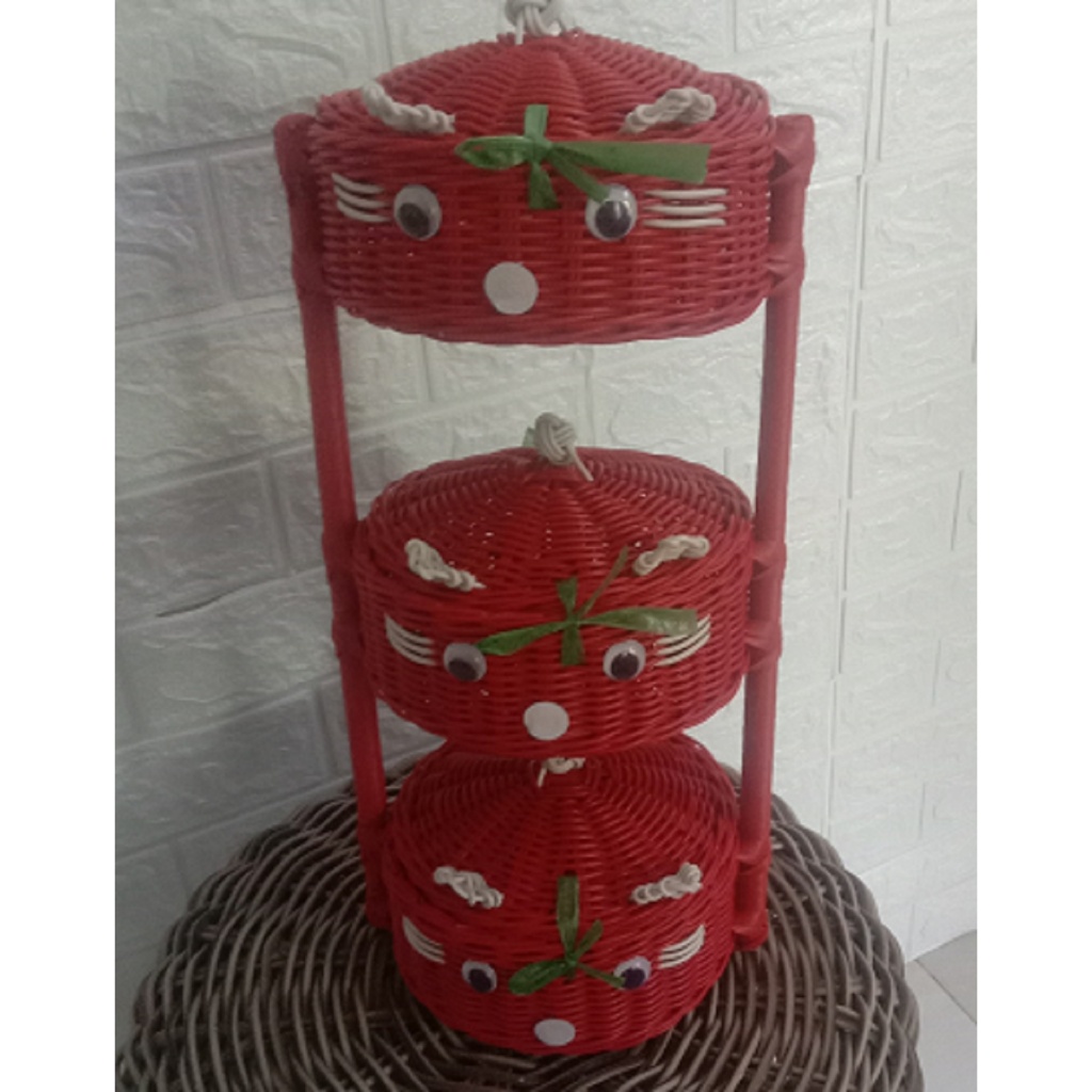 Rak Bumbu Dapur Rotan cantik 3 Susun elegan keranjang rotan rak susun rak serbaguna tempat telor tempat bawang perlengkapan dapur