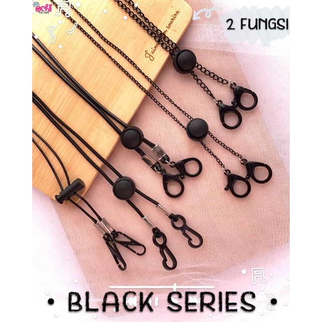 (2 Fungsi) Tali & Konektor Masker “Black Series” | Strap Mask | Lanyard