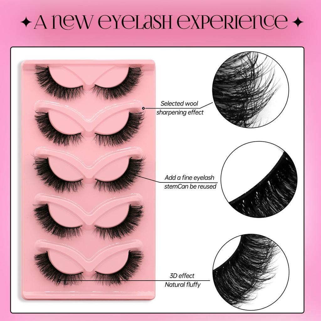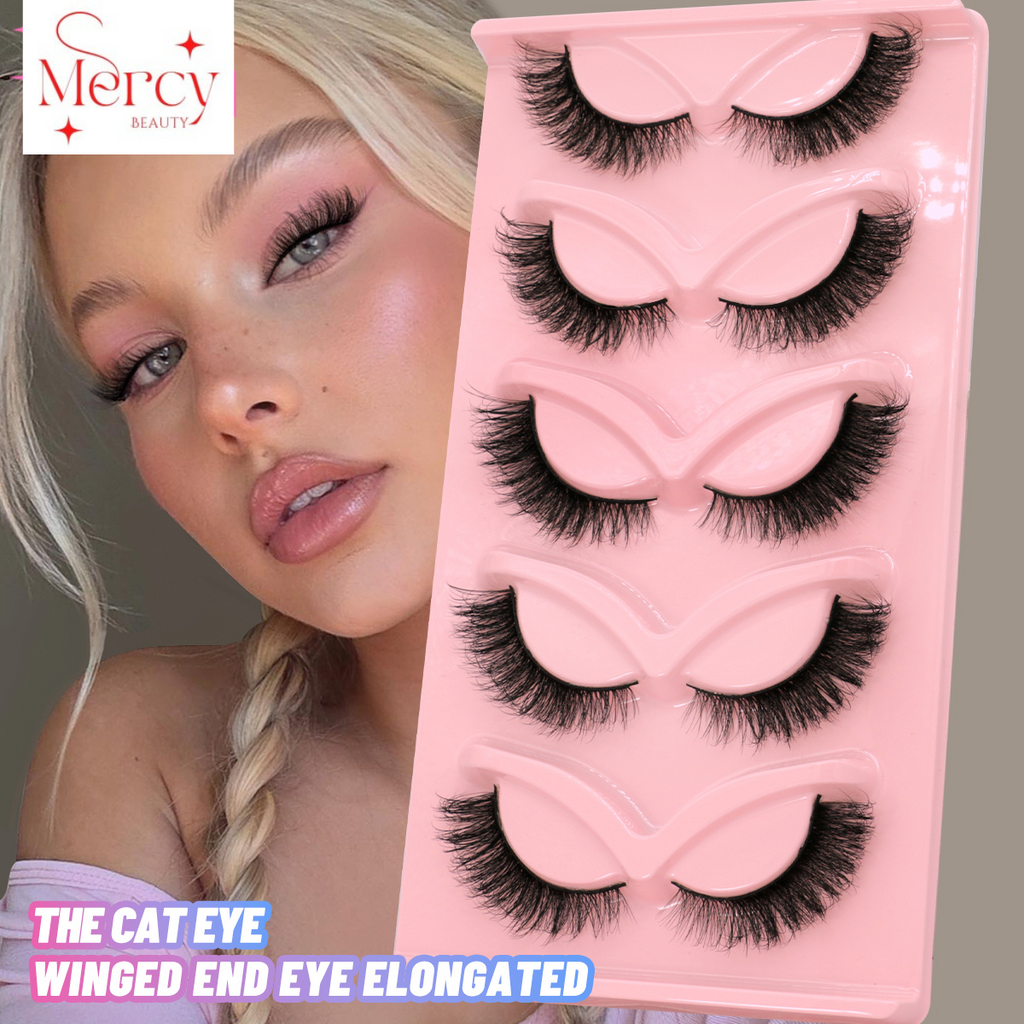 5 Pairs Cat Eye 3D Faux Mink Lashes Winged Eyelashes Soft Natural long Fake Bulu Mata Palsu Eyelash Extension