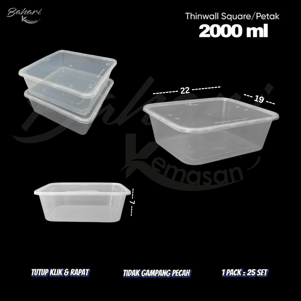 thinwall 2000 ml kotak makan plastik 2000ml food container isi 25