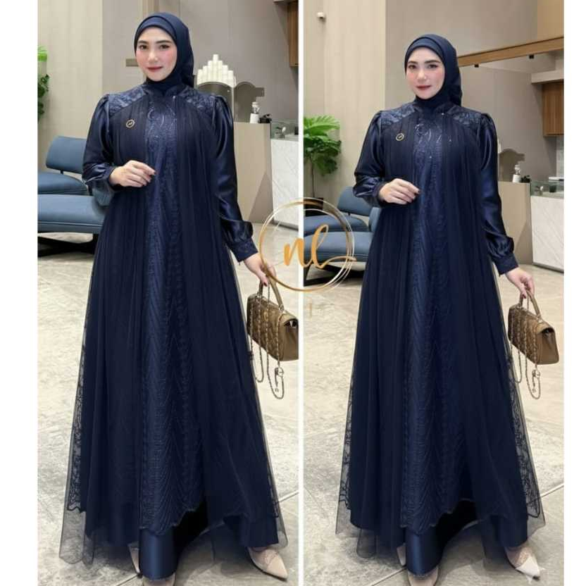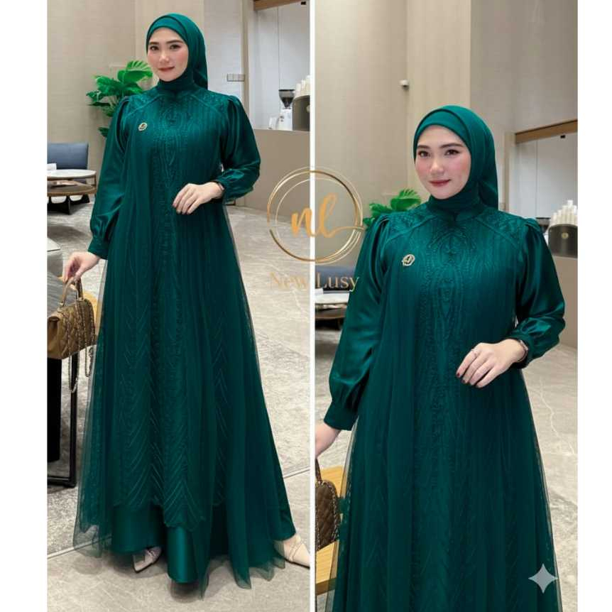 Gamis Brokat Tille Pesta Wanita Terbaru Mewah Elegan 2025 Loisa Dress Kondangan Mahogany/Emerald Viral // Gamis Lebaran 2026 Modern