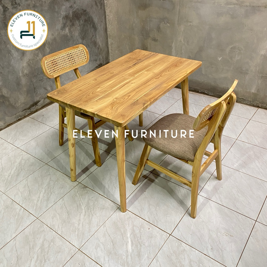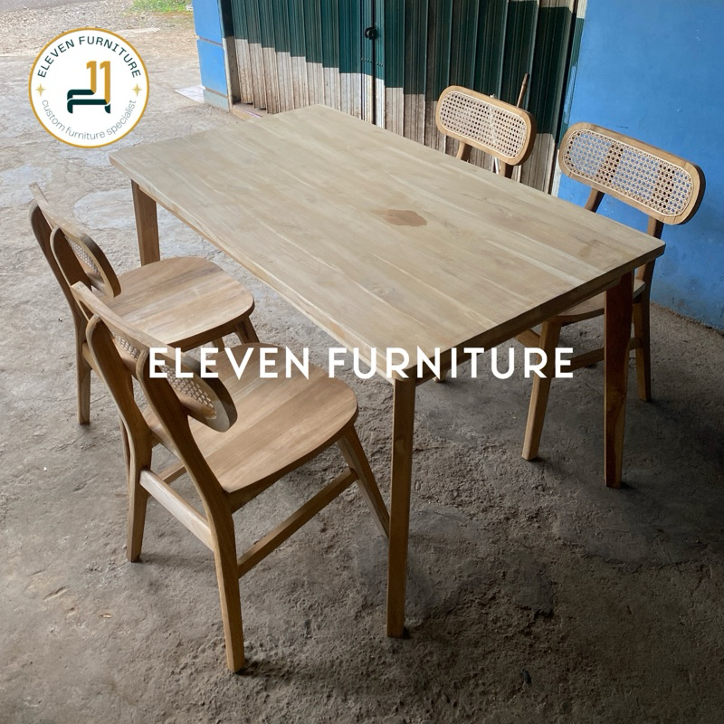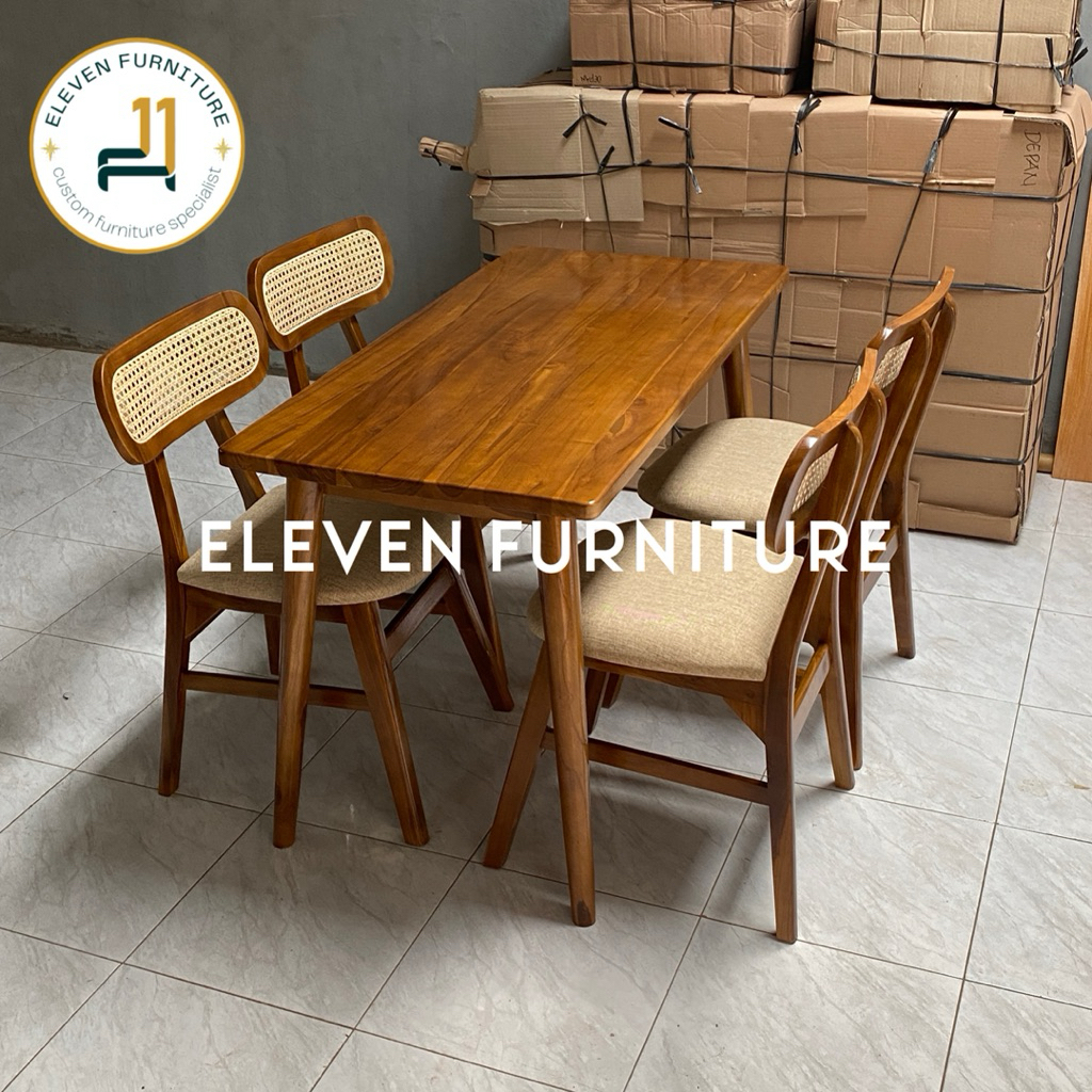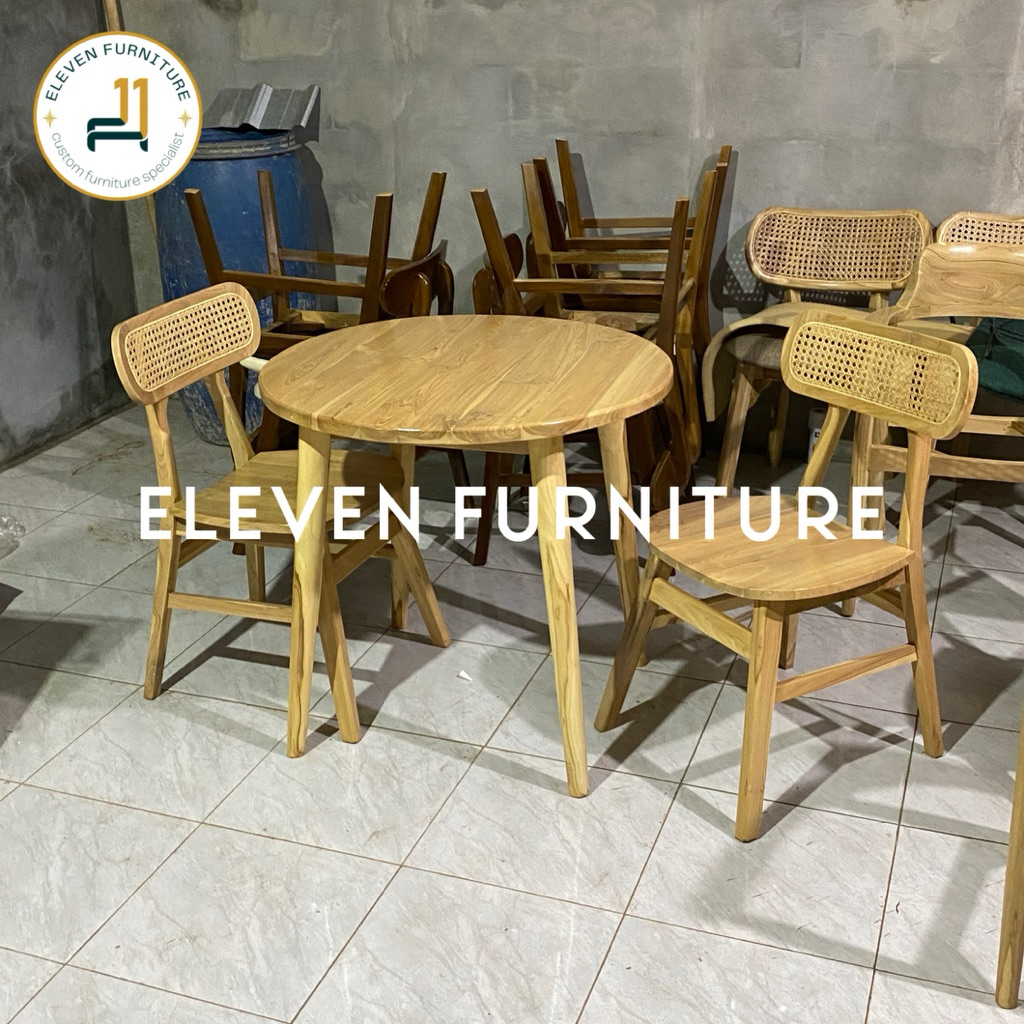 SET MEJA MAKAN 4 KURSI ROPAN ROTAN kafe cafe resto kayu jati minimalis retro alami japandi korean