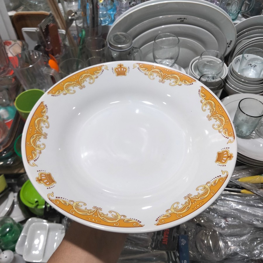 Piring Makan Keramik HARGA SATUAN Motif Mahkota Emas 9 inch