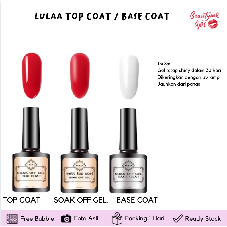 LULAA TOP COAT / LULA BASE COAT Termurah Top Coat Gel Primer + Base Coat Uv Gel Untuk Kutek Cat Kuku 8ml