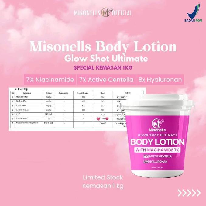 Murah [Exclusive Zahby] Misonells 1Kg Body Lotion Glow With 7% Niacinamide Active Centella Hyluronan Mencerahkan Melembabkan