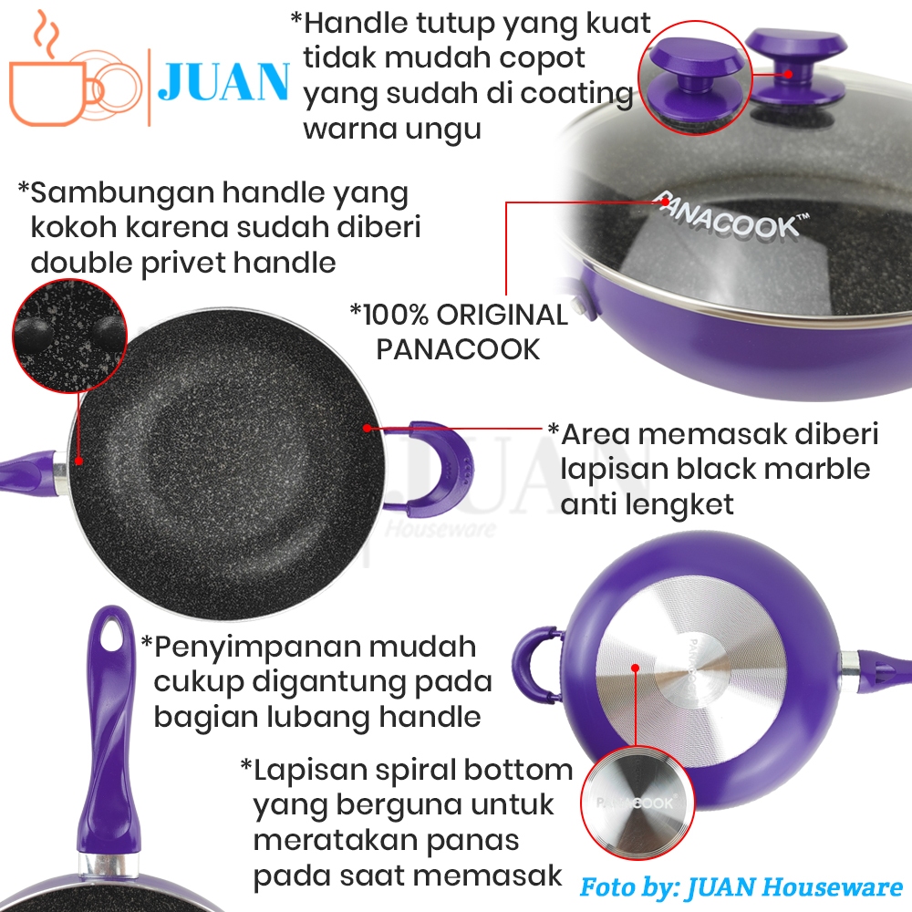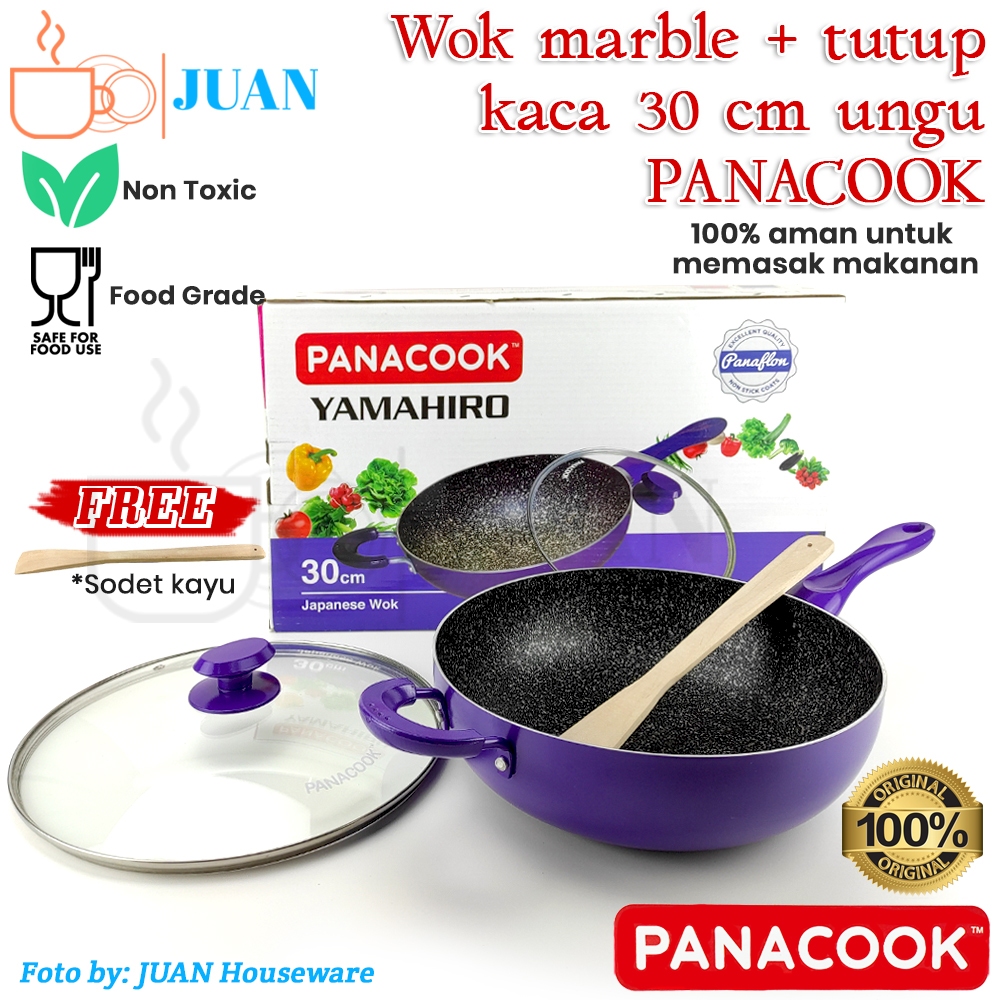 PANACOOK stir wok 30cm + tutup + sodet kayu teflon anti lengket ungu / panci masak wajan penggorengan gagang