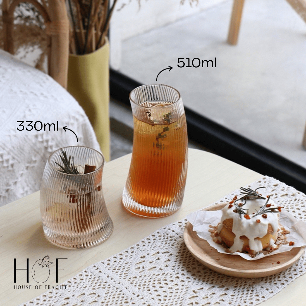 [HOF] SUKI Gelas Kaca Korea Aesthetic | Coffee Glass Cafe Unik Cangkir Lengkung Estetik ala Korea