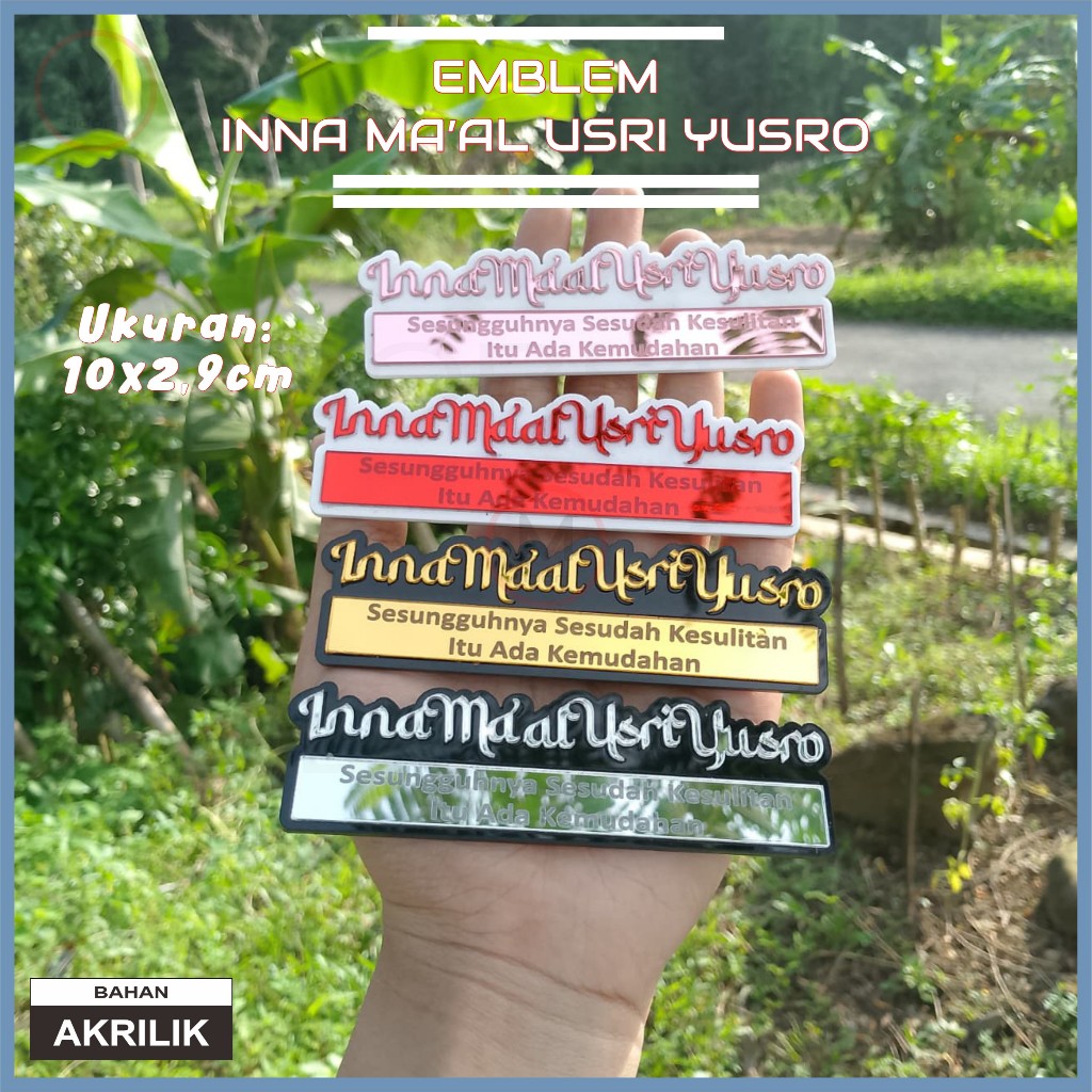 Emblem Inna Ma'al Usri Yusro 10 cm 1 PC 3D Timbul Aksesoris Variasi Motor Keren