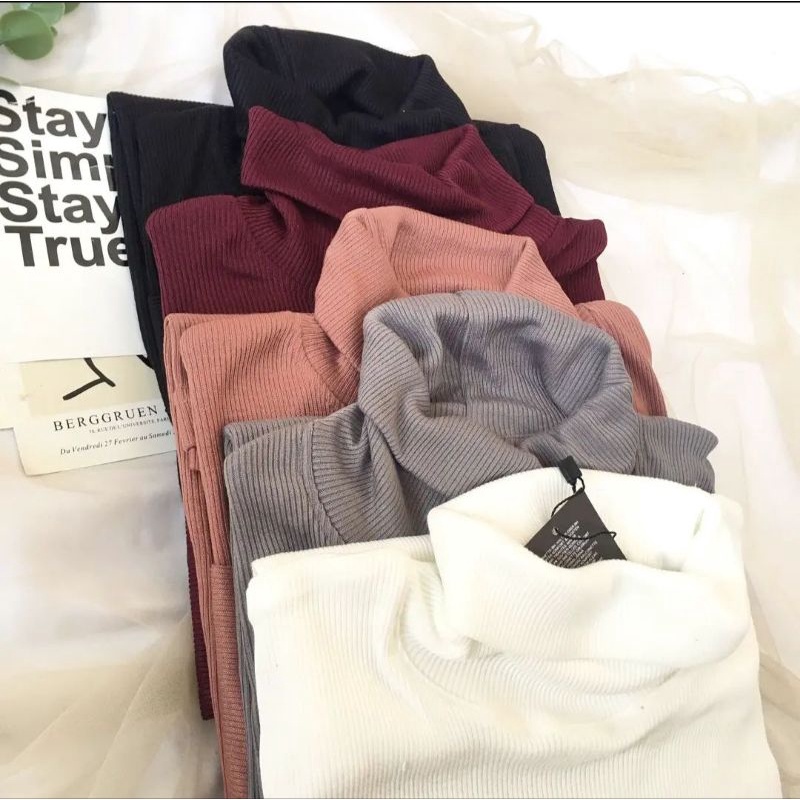 KAOS RIB Turtle neck (Premium SOFT/ Lebih Nyaman) TEBAL kerah Berdiri turtle polos ribb wanita/pria
