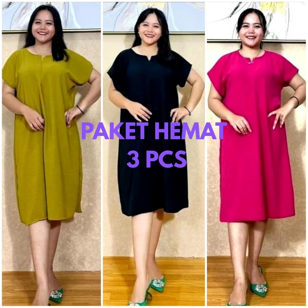 Paket 3 Pcs Daster Crinkle Adem Kekinian – Daster Wanita Panjang Busui Friendly