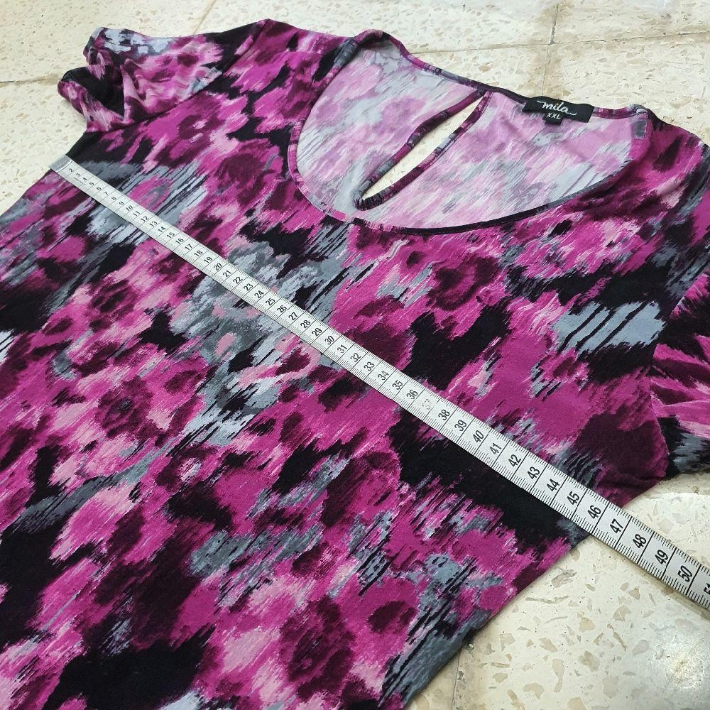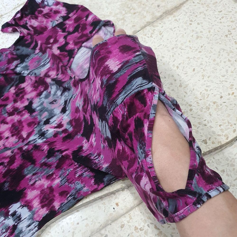 baju wanita blouse motif abstrak ungu abu hitam merk mila preloved