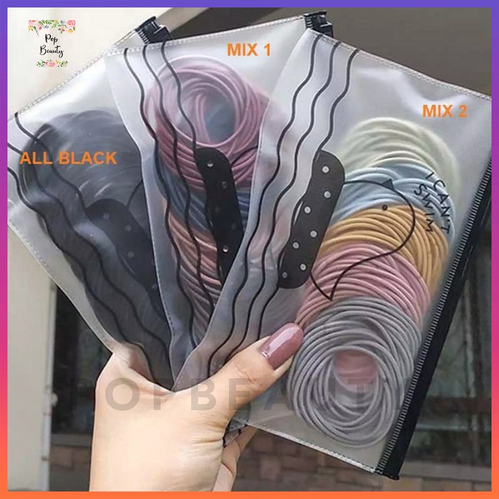 Ikat Rambut Karet Elastis 100 pcs dengan Pouch