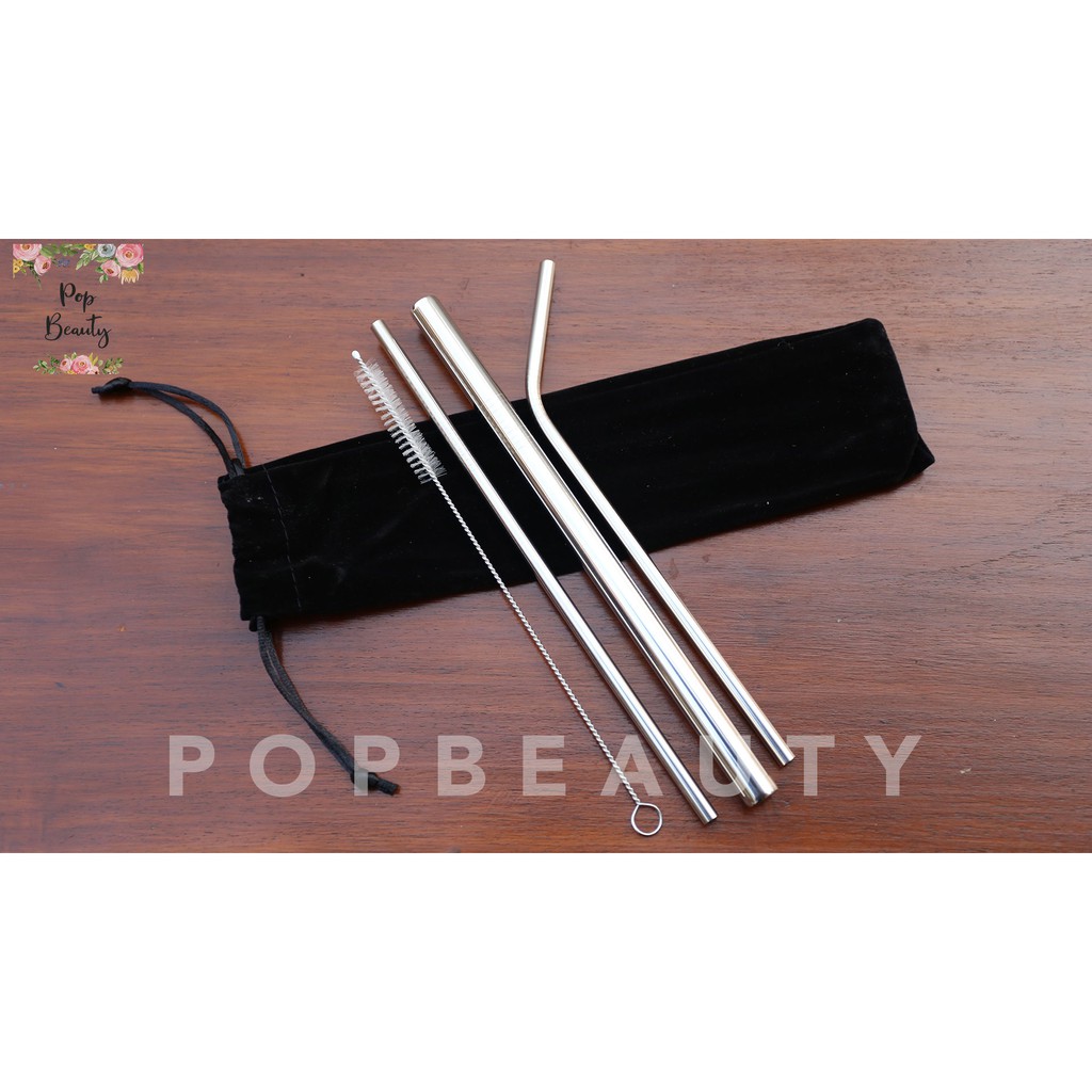 Sedotan Stainless Premium Silver Set 5 pcs Velvet Pouch
