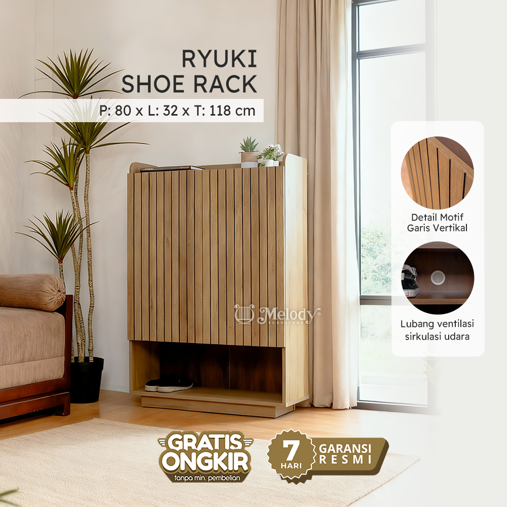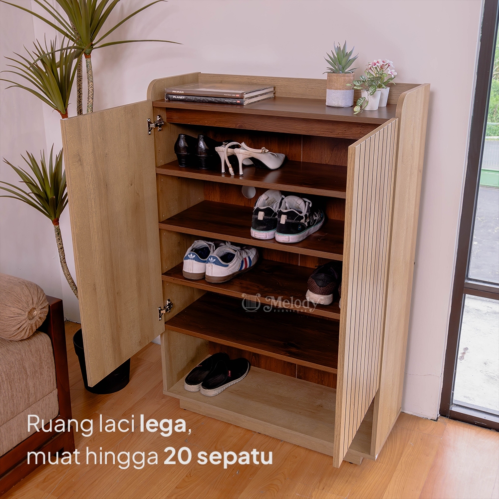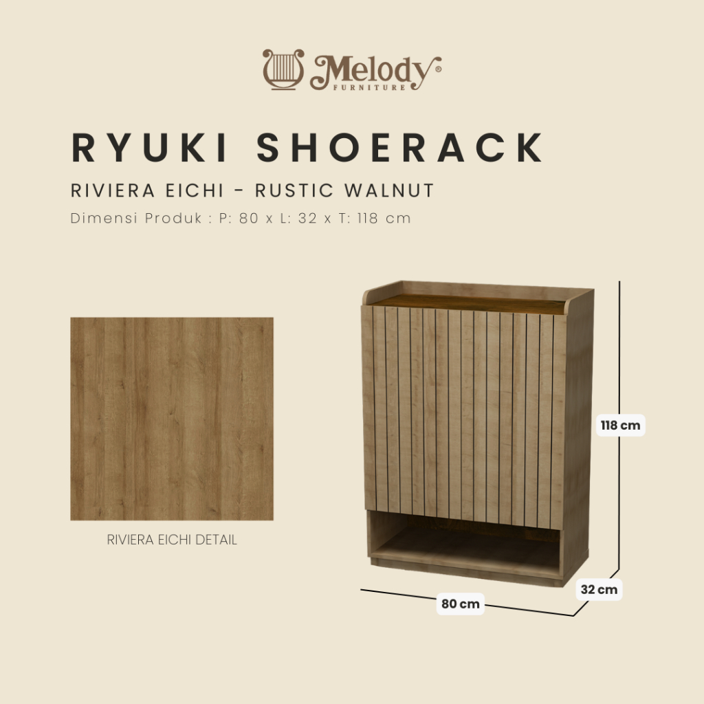 Melody Furniture - Laci Rak Sepatu Japandi RYUKI SHOERACK - Riviera Eichi Rustic Walnut