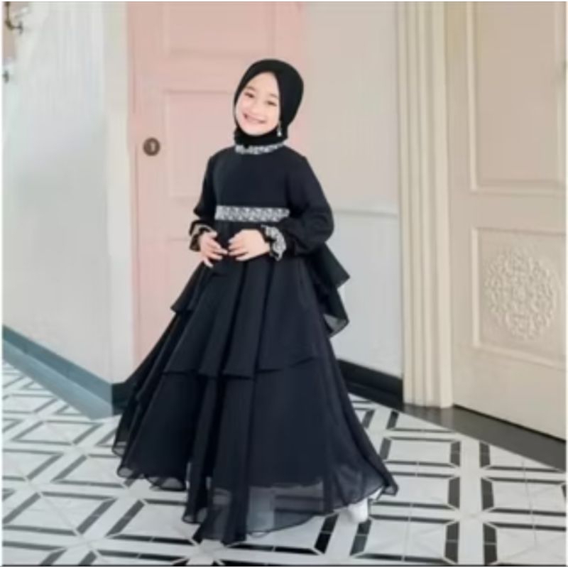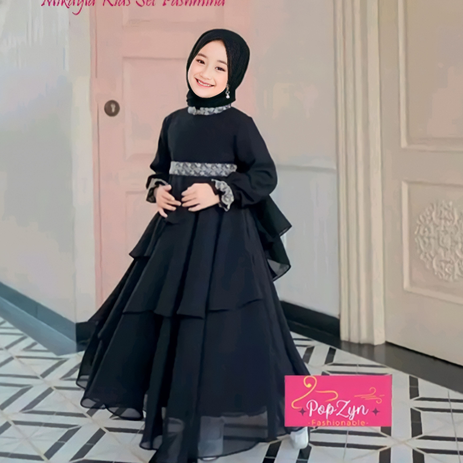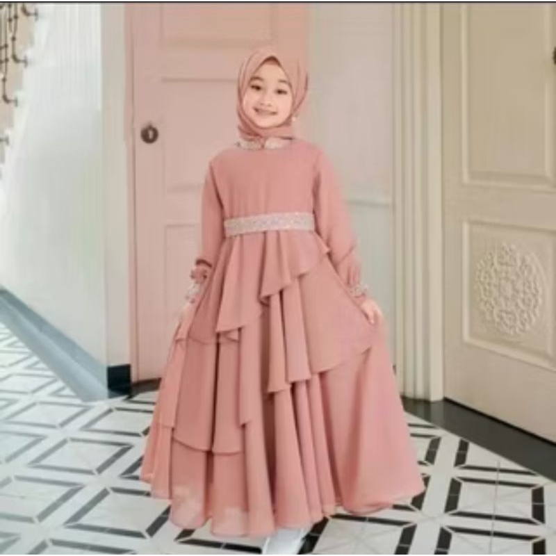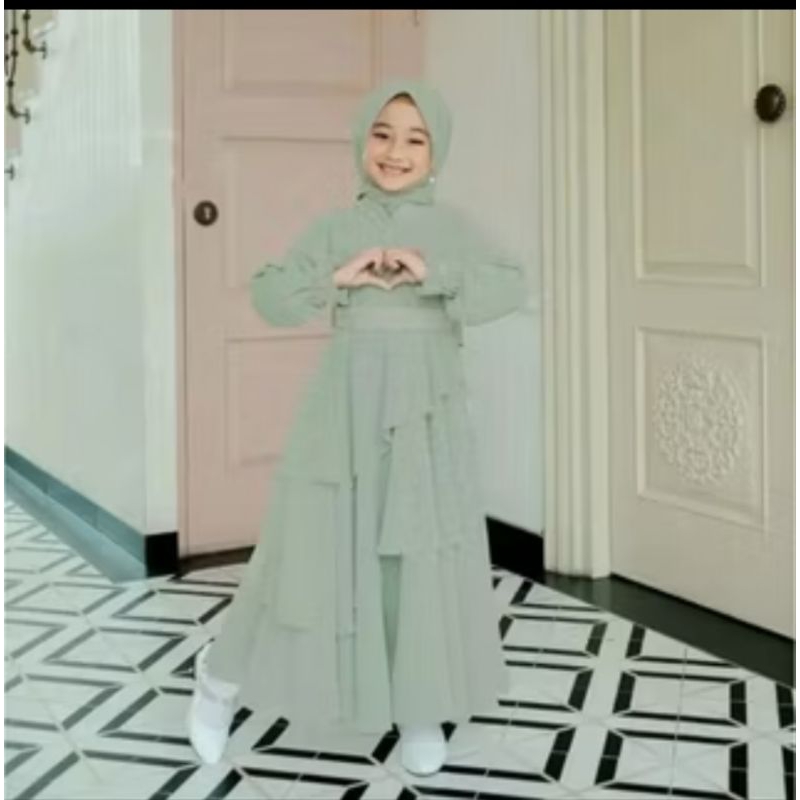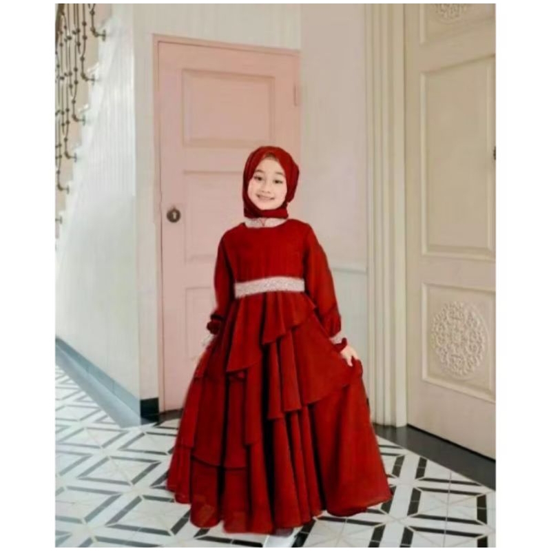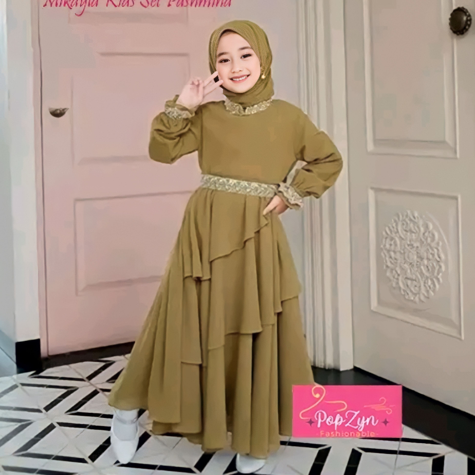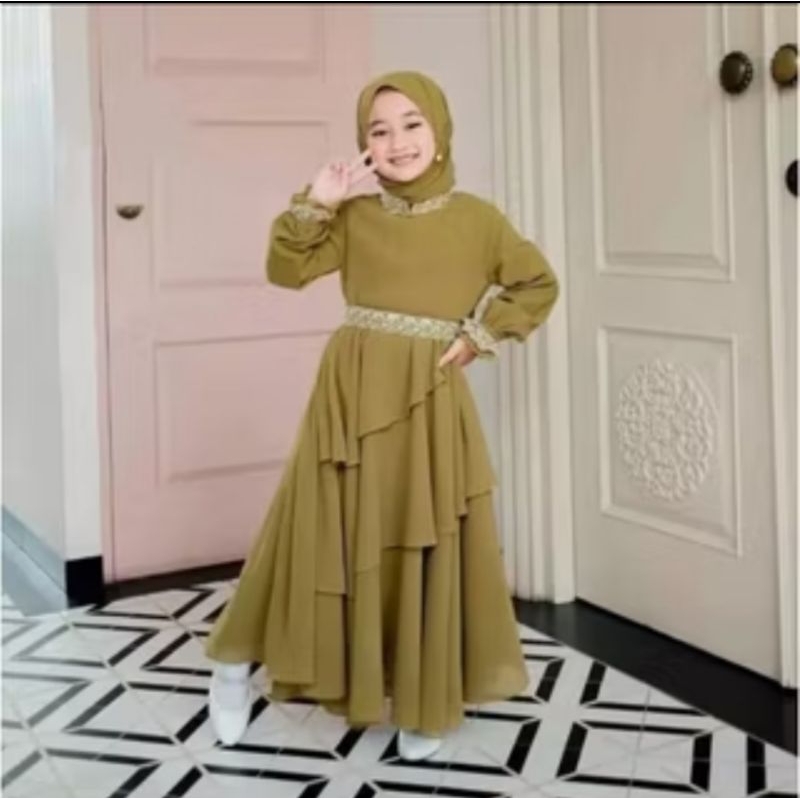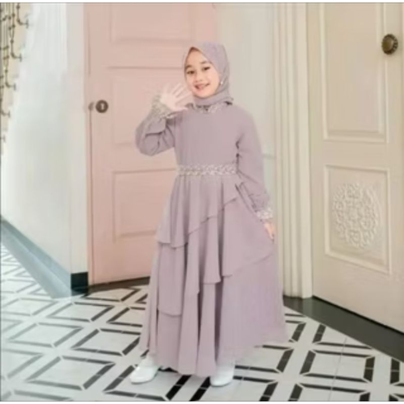 COD Gamis Anak Perempuan Mikayla Kids Set Pashmina Muslim Dress Anak Perempuan Kombinasi Renda