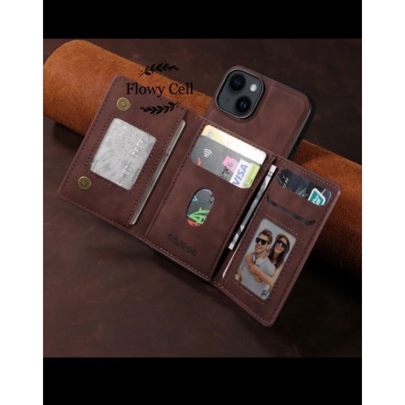 IPHONE 13 14 PLUS PRO MAX CASE DOMPET KULIT WALLET MAGNET SLOT CARD HOLDER