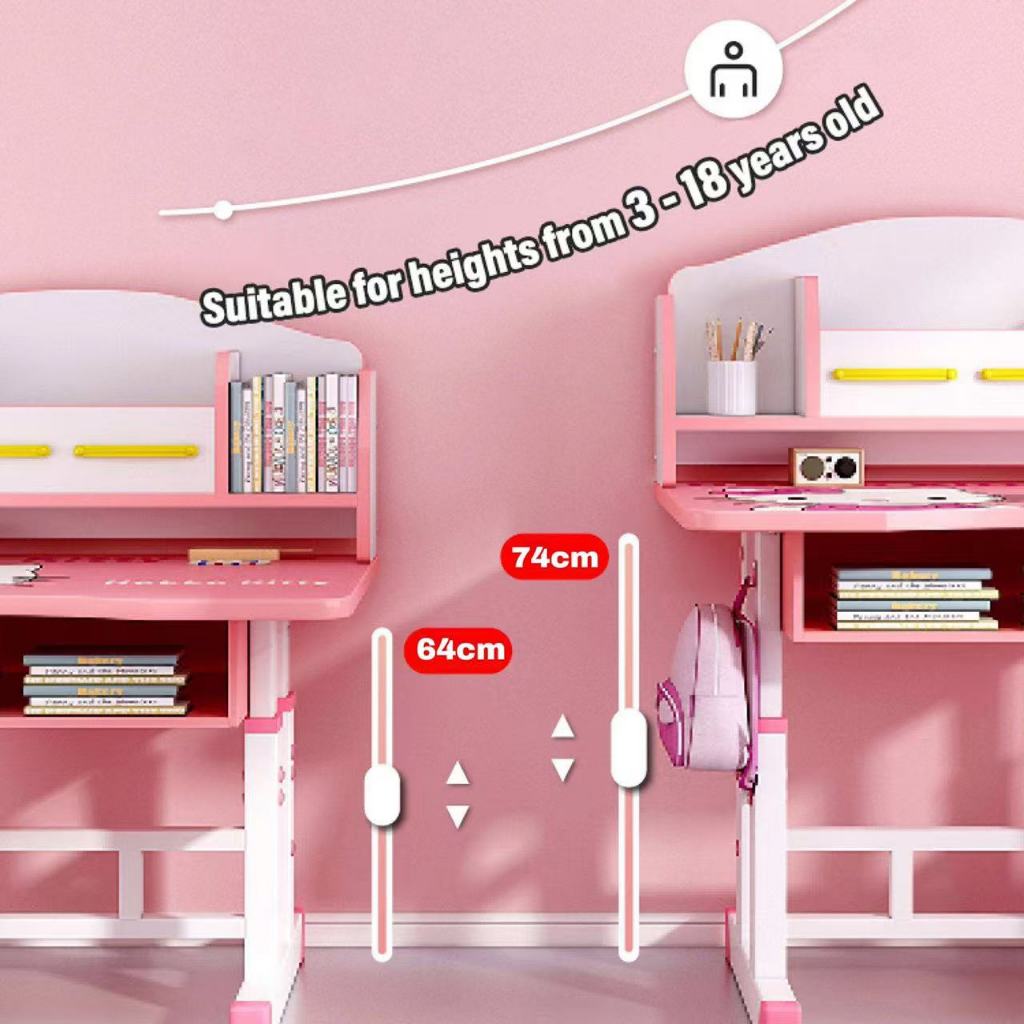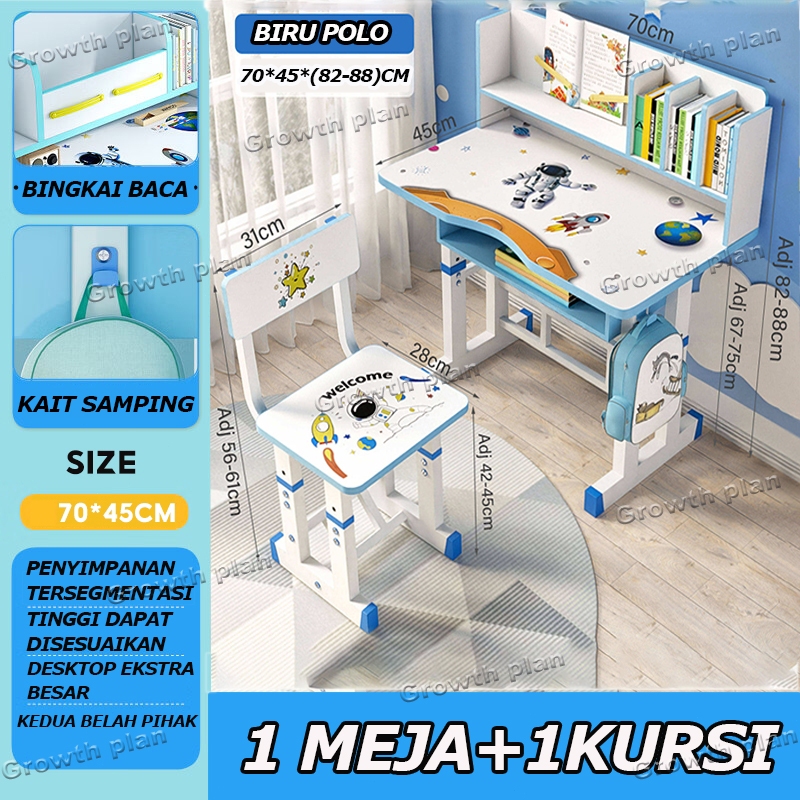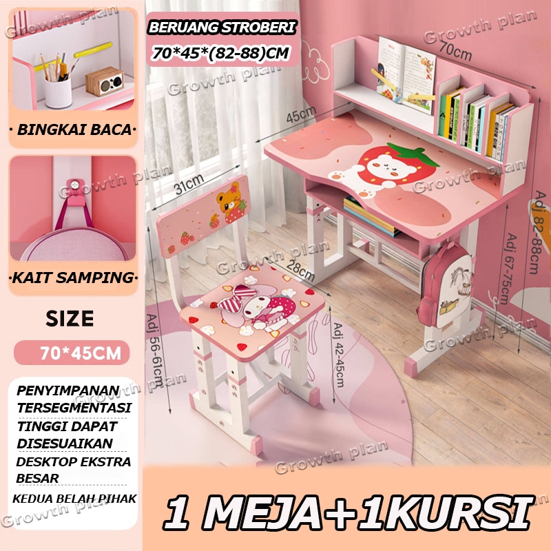 Set Meja Belajar Anak Meja Tulis Anak Meja Belajar Dan Kursi Belajar Mudah Dipasang Bahan logam yang diperkuat Dilengkapi Rak Buku Untuk Rumah Tangga
