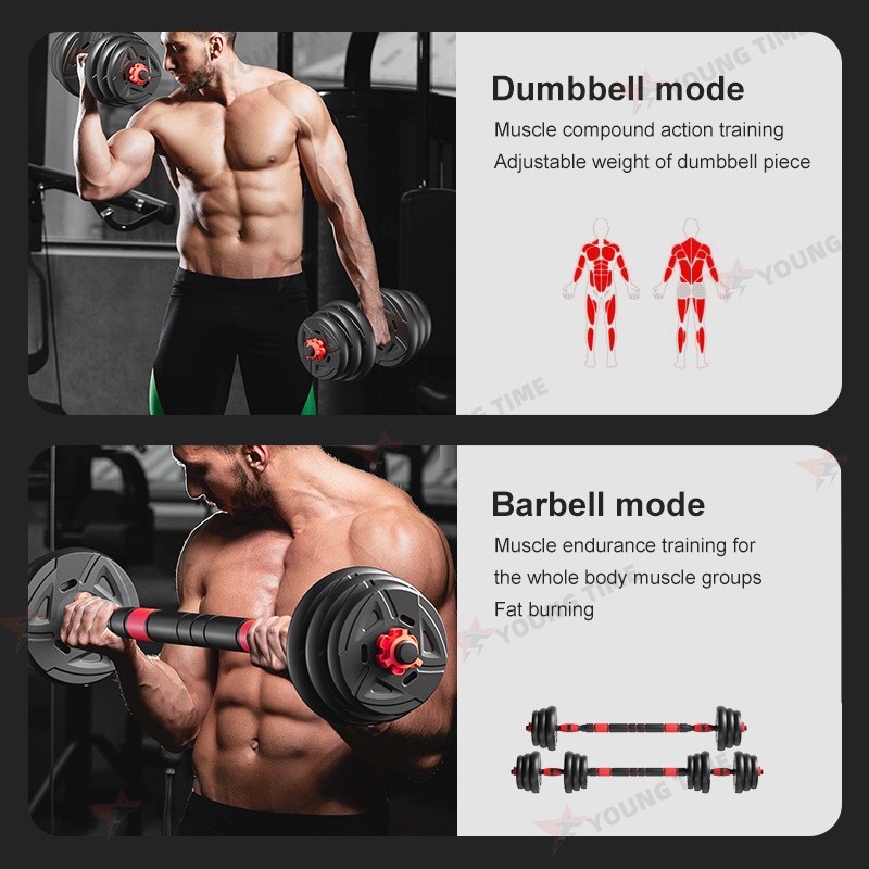 YT Dumbell Set 20kg 40kg Barbel Berat Bisa Diatur Plafon PVC Alat Olahraga Di Rumah Home Gym