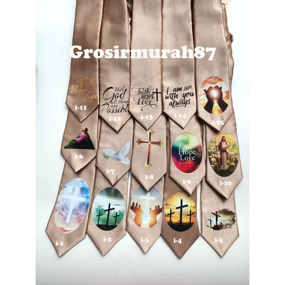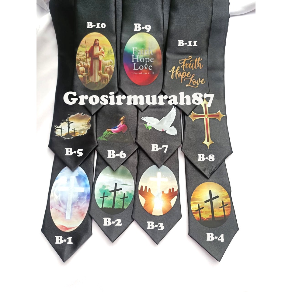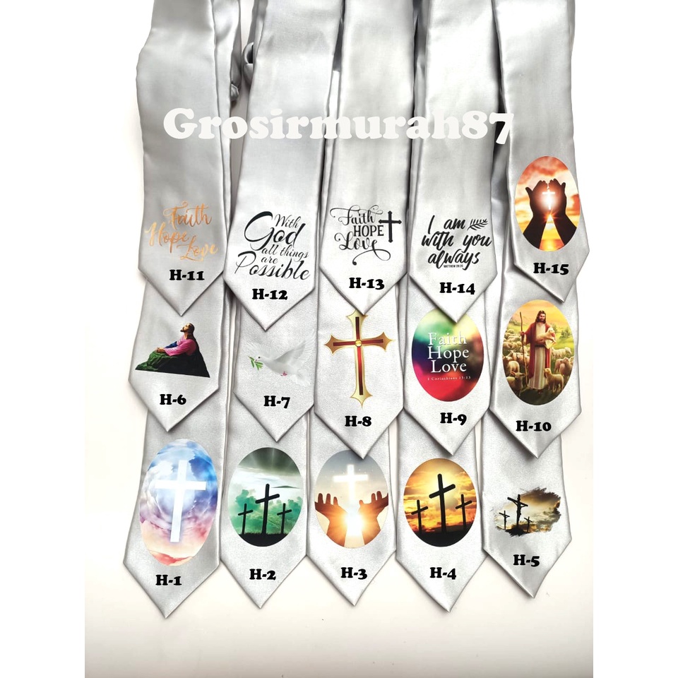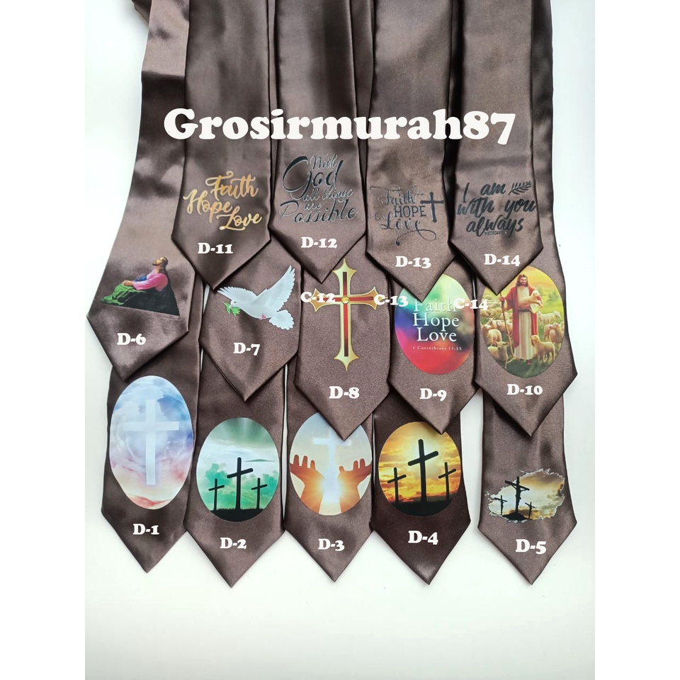 Dasi Motif Rohani salib natal paskah instant manual motif banyak ready stok hitam navy merah silver