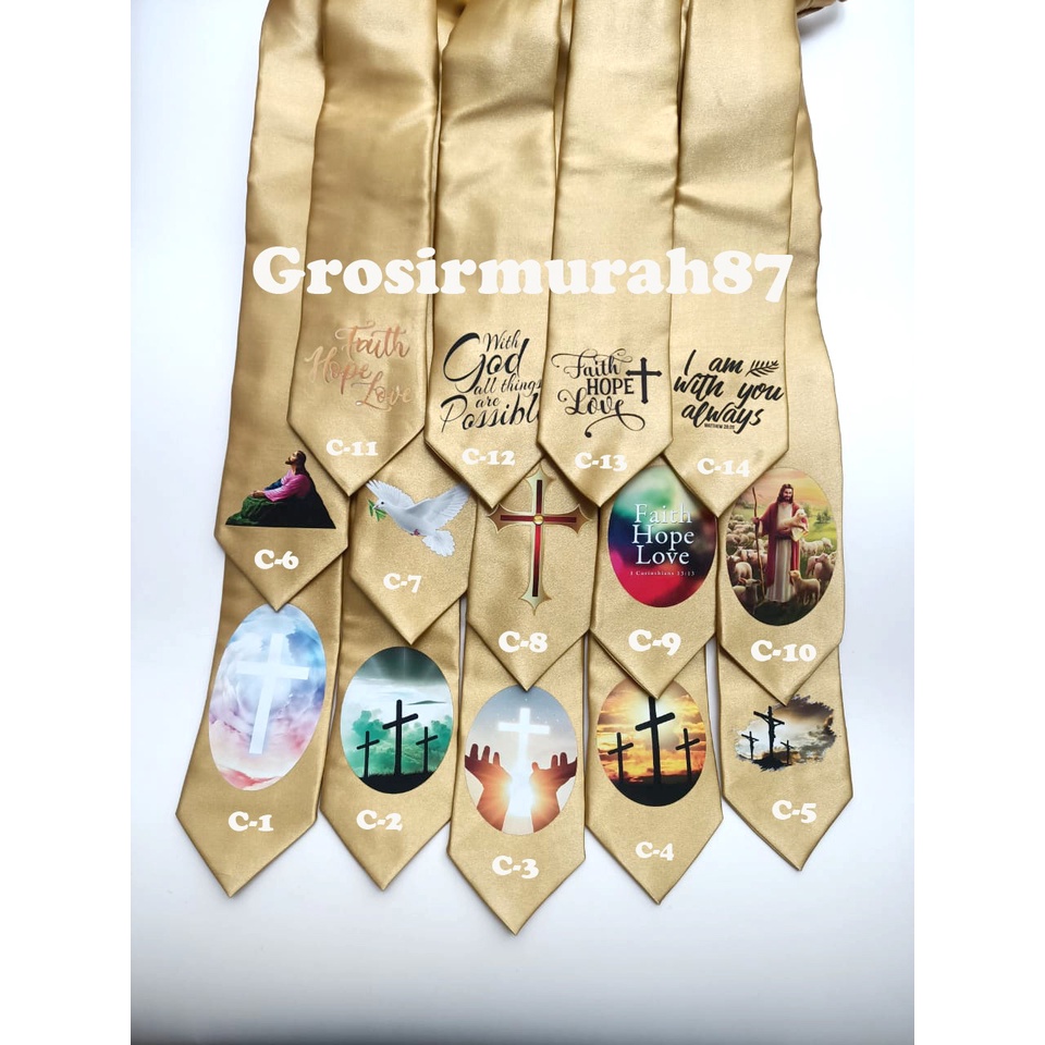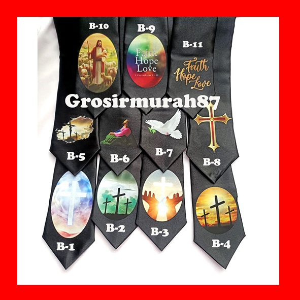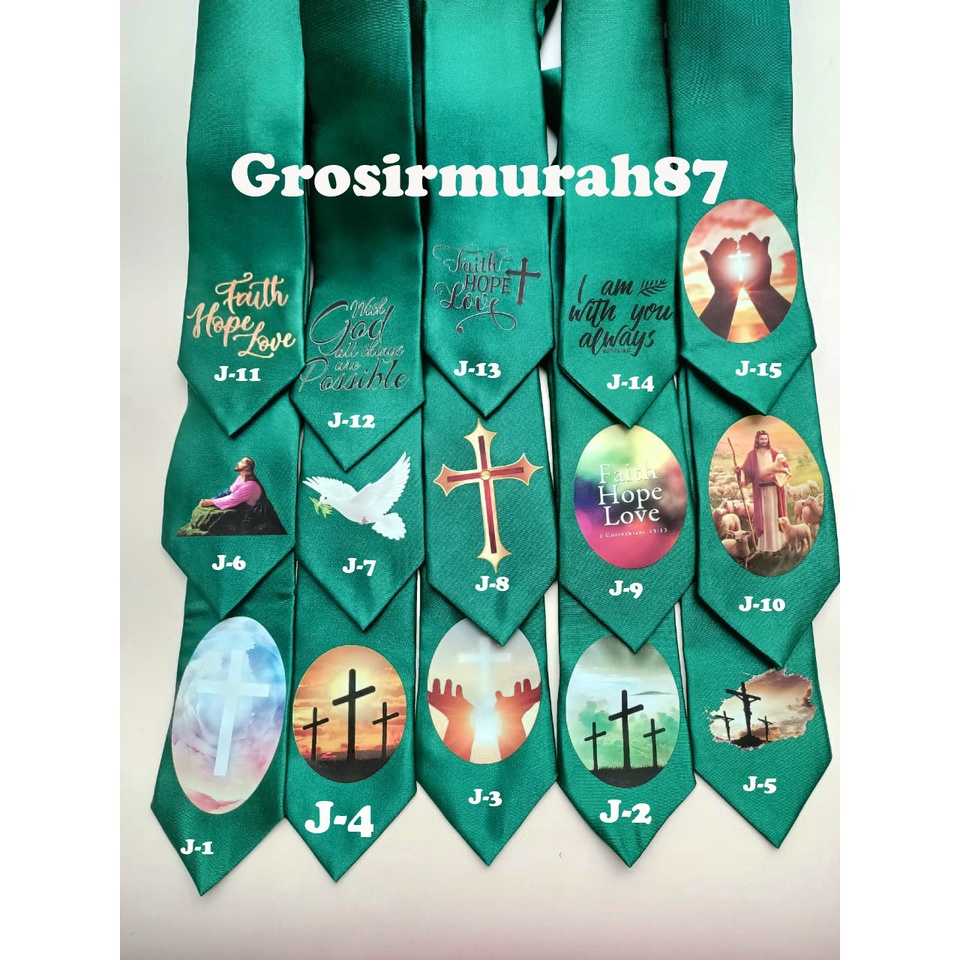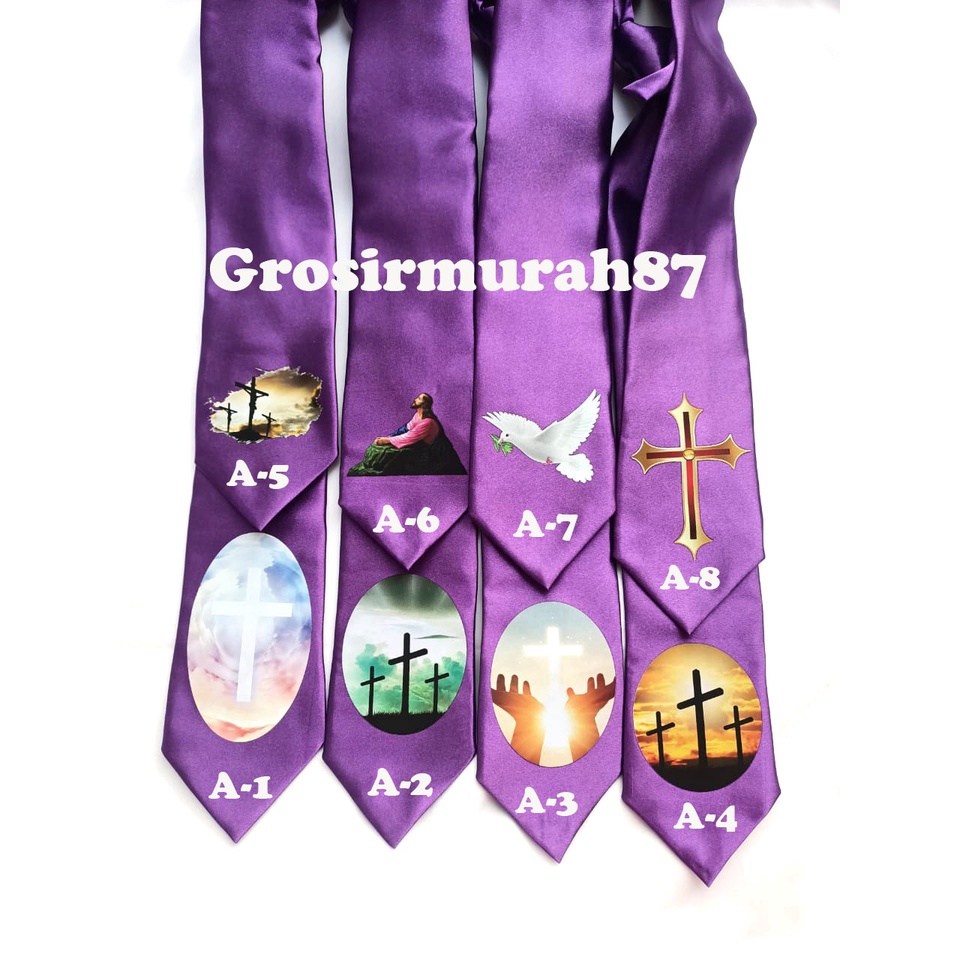 Dasi Motif Rohani salib natal paskah instant manual motif banyak ready stok hitam navy merah silver
