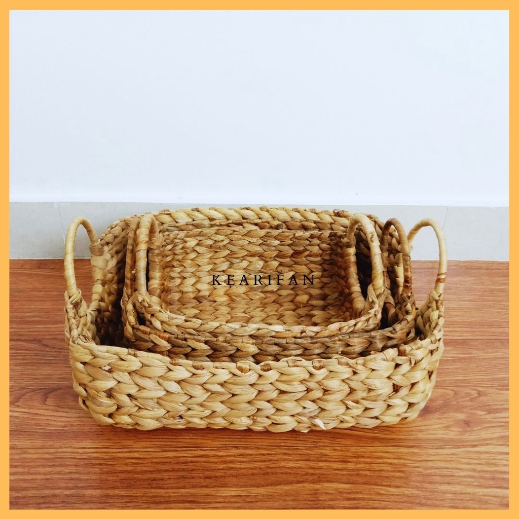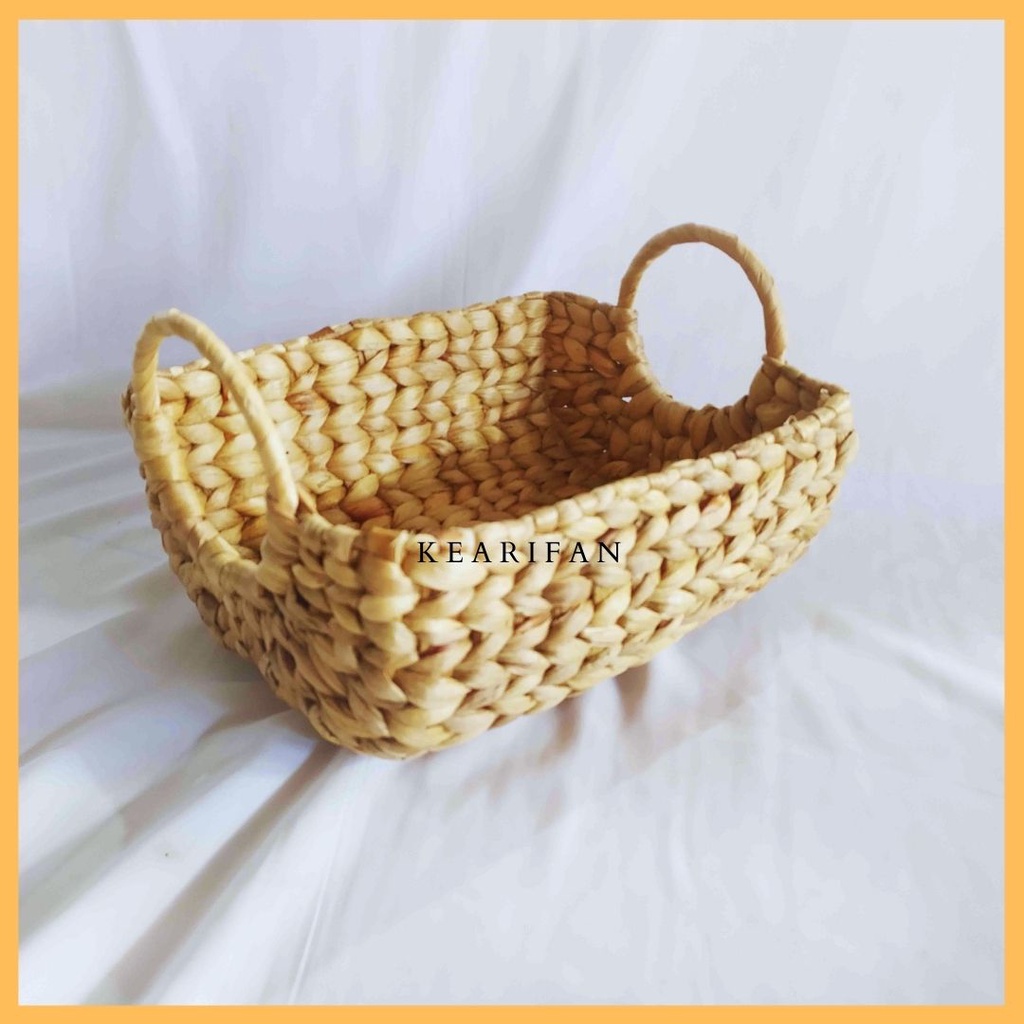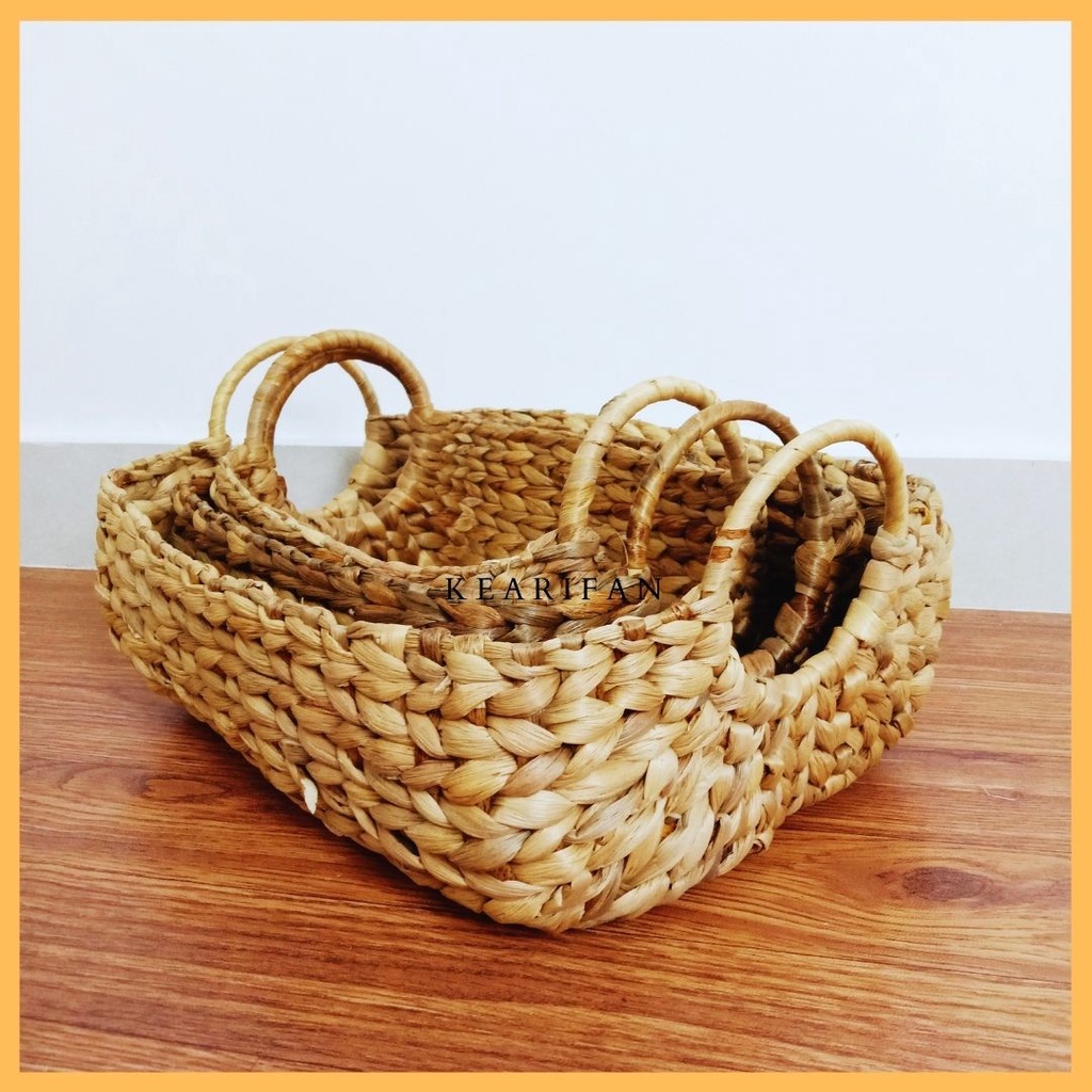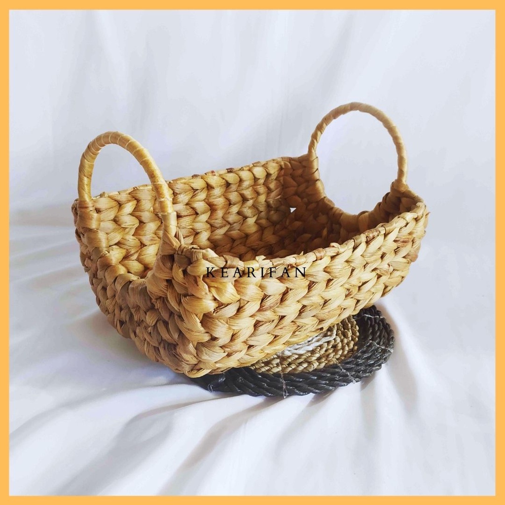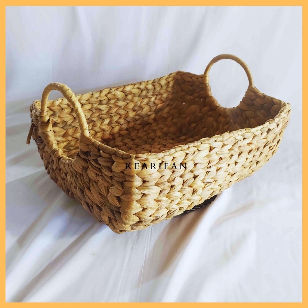 TRAY / KERANJANG ANYAMAN ENCENG GONDOK HANDLE ROTAN SATUAN