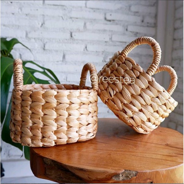 COD POT BUNGA ARTIFICIAL POT MINI ENCENG GONDOK NATURAL KERANJANG POT NATURAL COKLAT 18CM X 15 CM