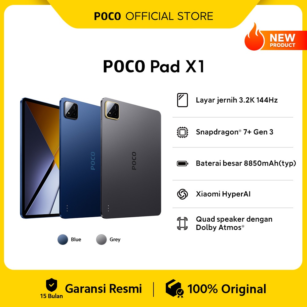 POCO Pad X1 (8GB/512GB) | Layar jernih 3.2K 144Hz | Snapdragon® 7+ Gen 3 | Baterai besar 8850mAh (typ) | Xiaomi HyperAI | Quad speaker dengan Dolby Atmos® [Official Store]