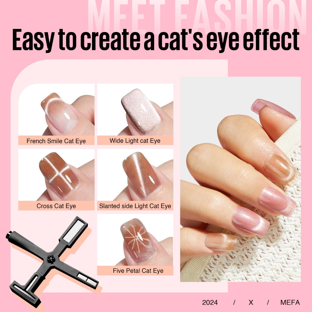 MEFA 9D Cat Eye Gel Nail Polish 15ml, Holographic Galaxy Cateye Magnetic Nail Polish Gel, Magic Chameleon Manicure Set(Pink)