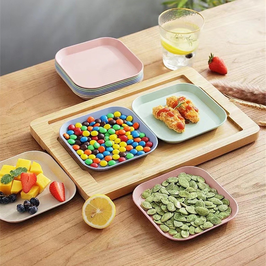 Piring Persegi Panjang 11cm Meja Makan Dim Sum Bahan Serat Jerami Gandum Wheat Straw Piring Makanan Ringan Piring Rumah Tangga Tulang Piring Plastik Piring Plastik Makan Unik Tempat Wadah Buah Sayuran Wonton Dimsum Siomay Gioza Warna Warni Pastel