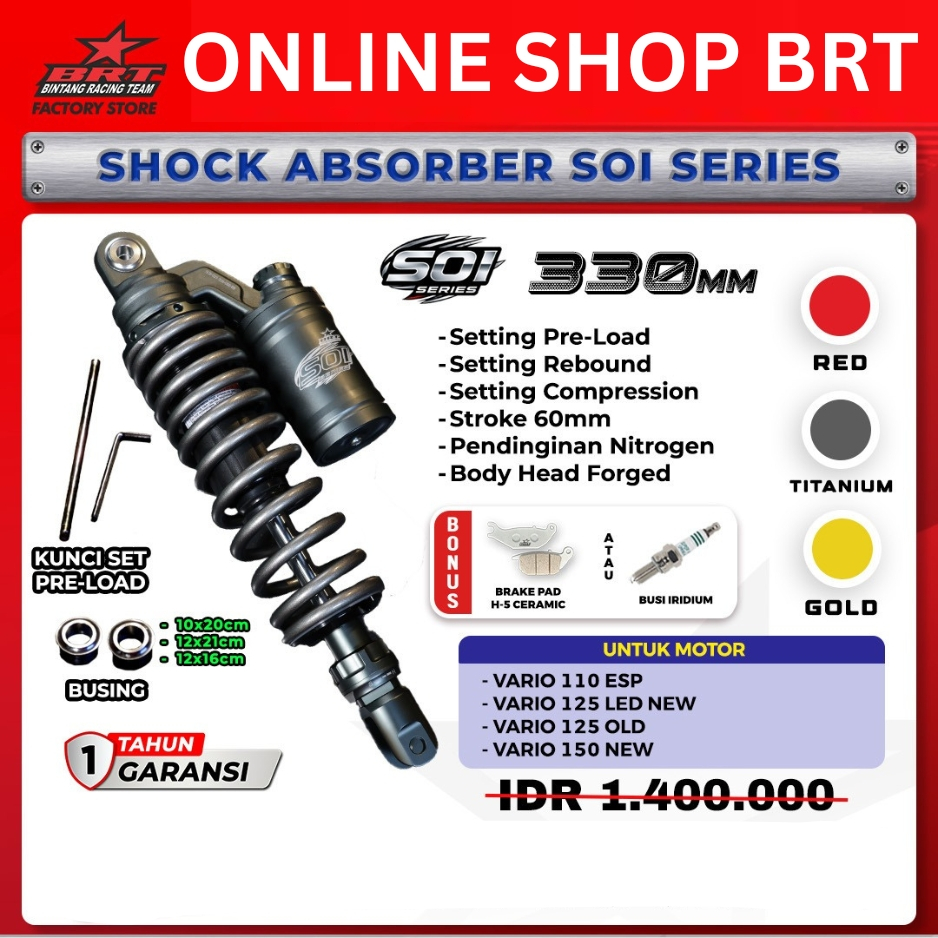 Shockbreaker Shock Soi BRT Skok Absorber SOI Sok Belakang Tabung Atas 330 MM VARIO 110 ESP VARIO 125 VARIO 150