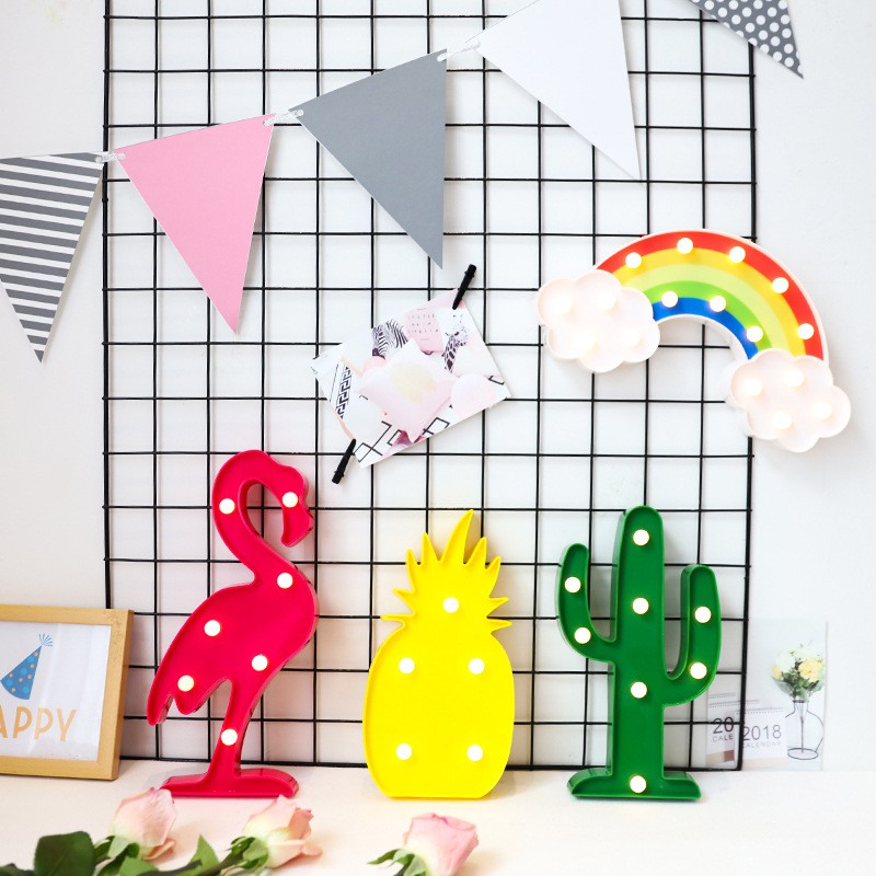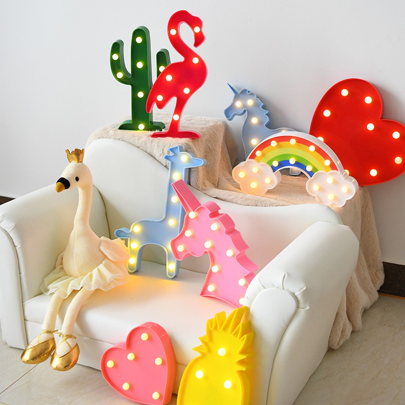 Lampu Tidur Malam LED Bentuk kartun Unicorn Flamingo Kaktus Dan Pohon Natal 3D Dekorasi Pajangan