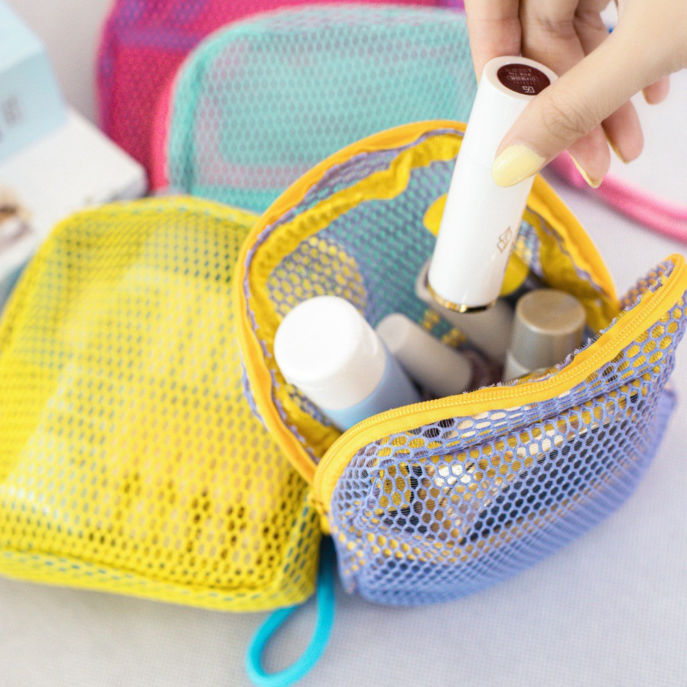 Pouch Kosmetik Mini Jaring / Tas Penyimpanan Mesh Bag Pouch Tahu Portable / Tas Make Up Travel Serbaguna Stockami C1428