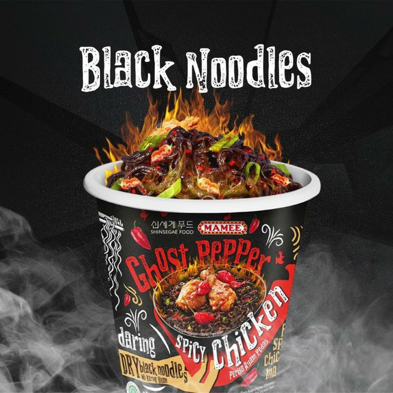 Mamee Ghost Pepper black noodles cup / Mi kering hitam ayam pedas / Mie spicy chicken
