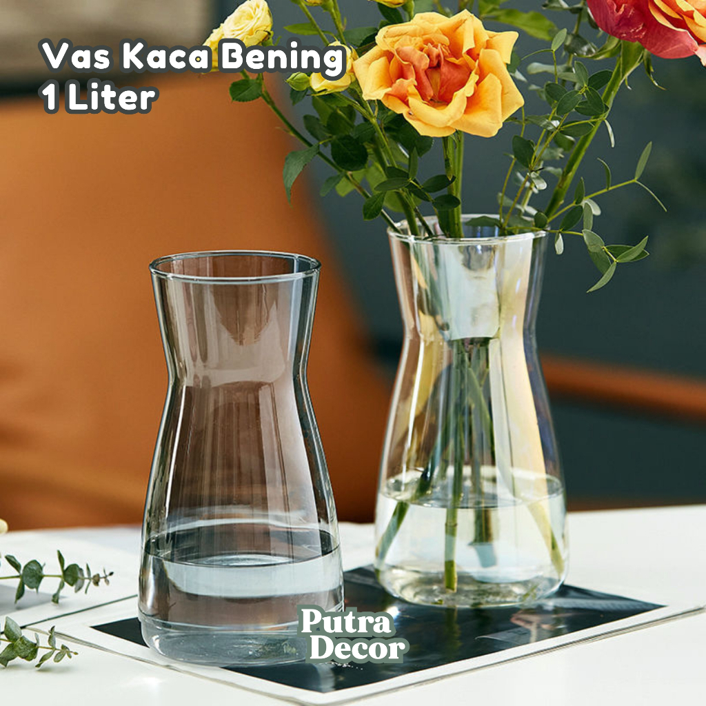 terbaru SWITZERLAND PITCHER Karafe Minuman / Vas Bunga Kaca Bening 1L utk KA886