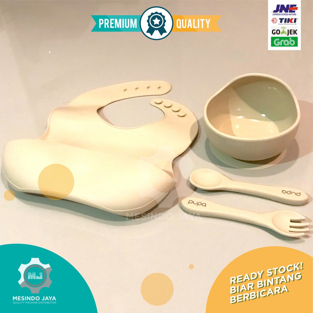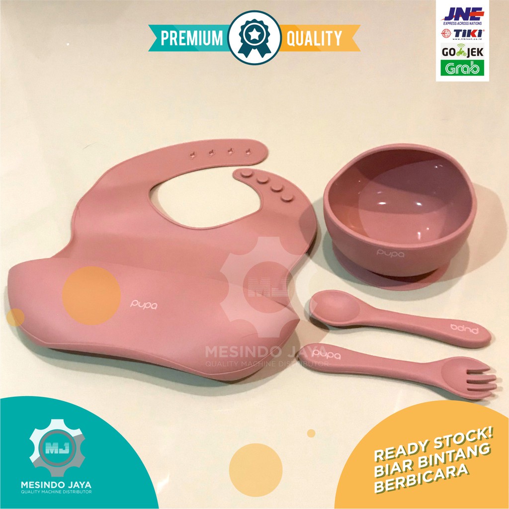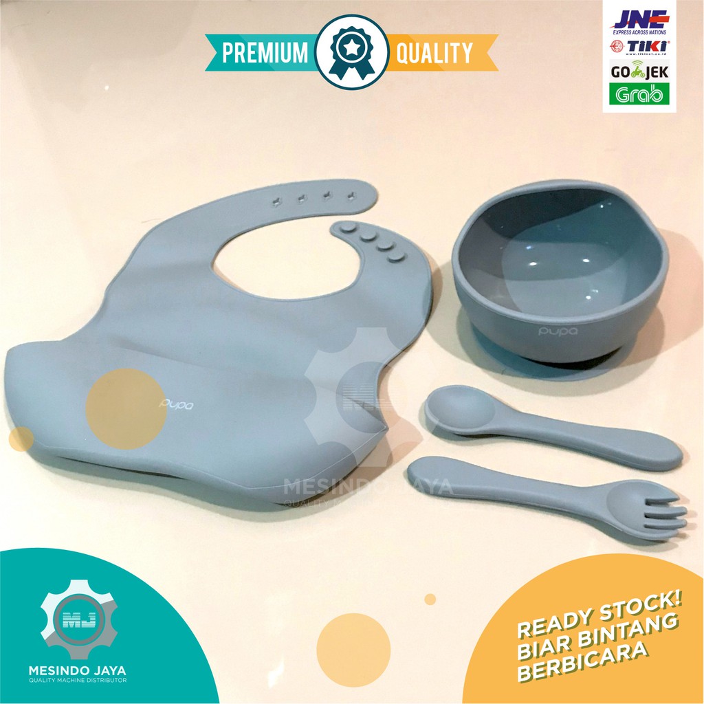 Alat Makan Bayi Silikon BIB, Sendok & Garpu Silicon, Mangkuk / Perlengkapan Makan Bayi Baby Set PUPA
